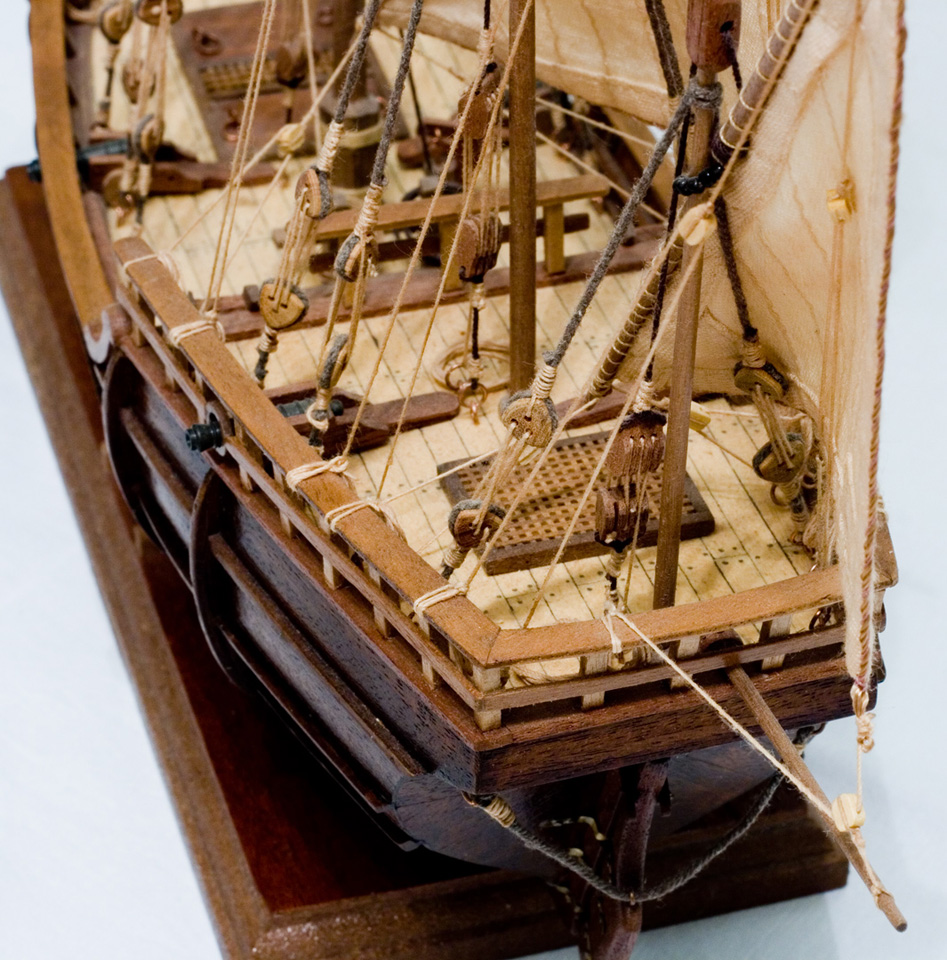 Дико извиняюсь за свою лаконичность... Могу лишь добавить , что при сборке использовал рейки ореха, медную проволоку, паруса шил...ну и все пожалуй. Модель в постройке не сложна, каких то творческих мук при её создании не испытывал. Чертежи валялись в "глобальной...паутине", не смог пройти мимо )))) Захотелось построить "малышку".