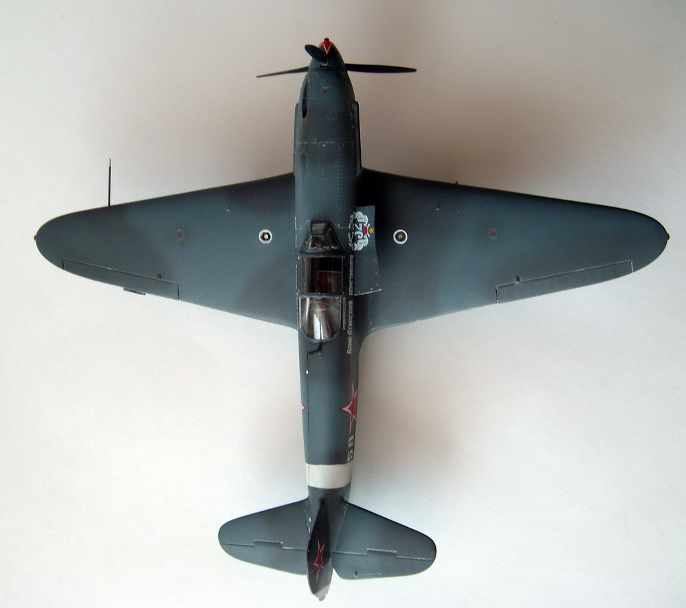 Приветствую Всех!Представляю очередной Як-1Б от Моделсвита. При сборке использовалось травление от Armory(интерьер и закрылки) и декаль Микромир.Доработан кокпит:добавил трубопроводов,а также проводка к ручкам управления,вентилям,штурвальчикам и приборам на задней панели приборной доски(надо сказать,что травленая панель подходит идеально и стыковка половинок фюзеляжа не требует дополнительной распорки).Правый капот вырезал из фюзеляжа и облагородил открытую часть.Для этого,борта и верхнюю часть правой консоли крыла изнутри сточил толщину,затем вырезал из листового пластика 0,2мм "ушки" и сам капот,просверлил отверстия.Затем собрал весь "пазл" и покрасил.Перед тем как собирать крылья и фюзеляж,сточил задние кромки крыльев,стабилизаторов и киля.Фюзеляж,как я уже говорил,собрался без проблем,после склейки крыльев зашпаклевал фару и АНО.После сборки крыльев с фюзеляжем оклеил капоты фольгой-самоклейкой,продавил замки,нанес клепку и расшивку.Фонарь собирал из трех частей:задняя-от распиленного штатного,переднюю нашел в"помойке не нужных деталей",сдвижная часть-вакушный,для аккуратовского Яка(изрядно доработанный).Грунтовал Тамией из баллона.Красил акриловой Тамией,цвета мешал сам.Базовые цвета осветлял.Затем покрыл футурой,после просушки полировал 2000-й наждачкой и микрофиброй.Декали обрабатывал Sol и Set.Еще футуры и полуматовая Тамия.Снизу добавил "масляные точки".Некоторые мелкие доработки я не упомянул,но на фото все видно.Приятного просмотра!