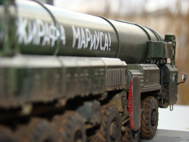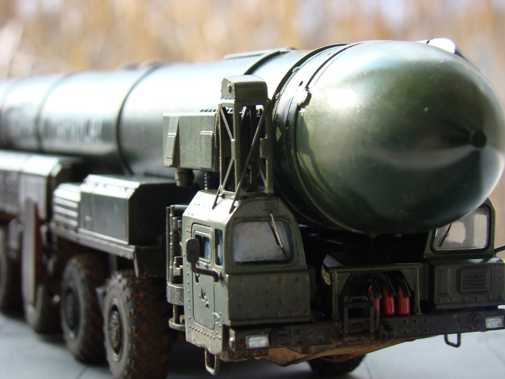 Первый РЕАЛИСТИЧНЫЙ "Тополь"....правильное название ПГРК - подвижный грунтовый РК(в армии)...по грунту движется ну 20км/ч - поэтому грязи многовато....боевые тополя однотонные....
