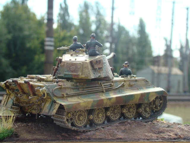Хочу показать Вам свое "раннее творение"--собирал летом 2013. Это диорамка, на которой представлен танк Pzkpfw VI "Королевский Тигр" с экипажем в Нормандии летом 1944 года.