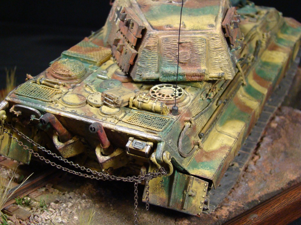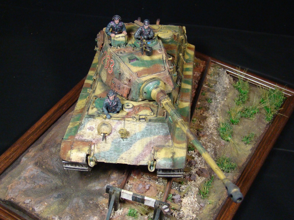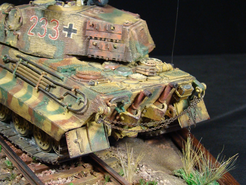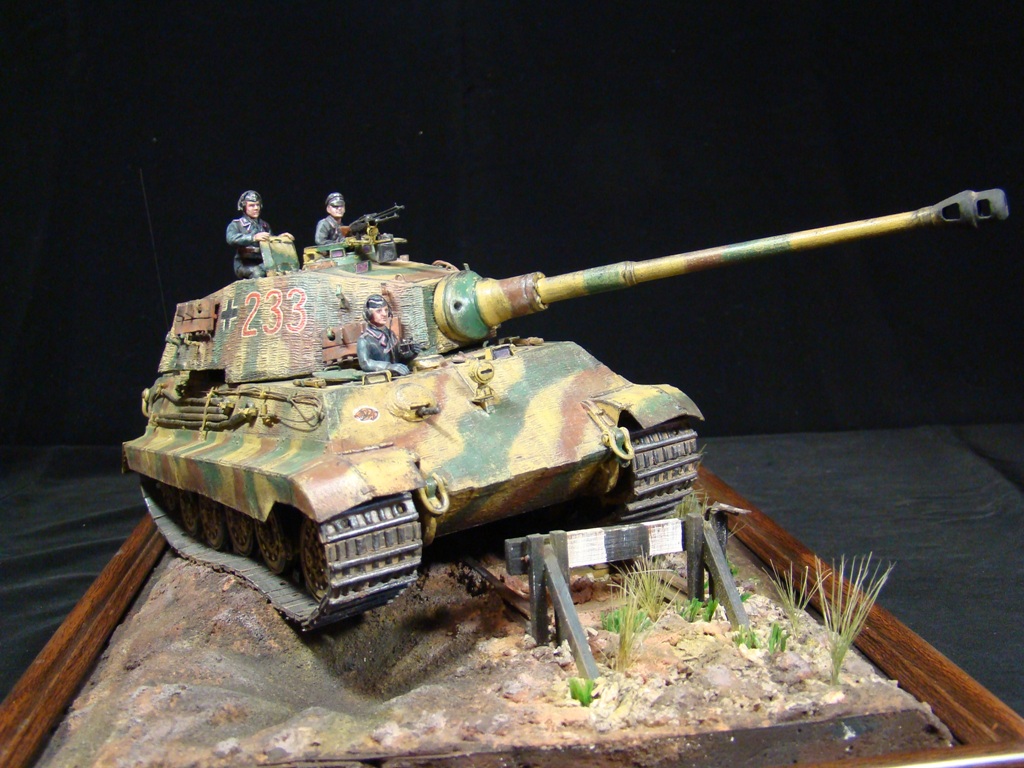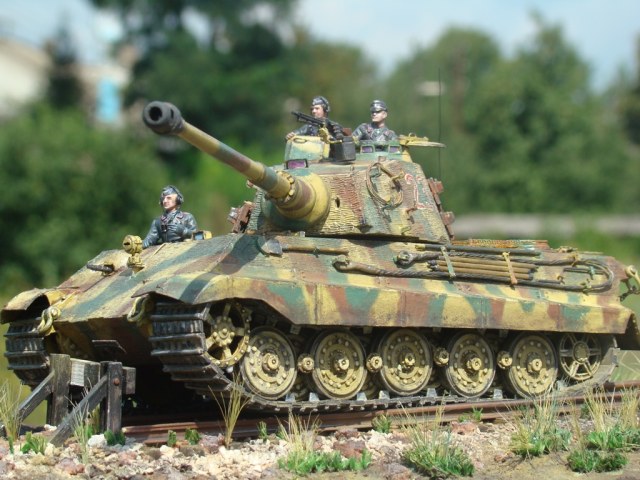 Окраска модели танка делалась по рисункам и фото прототипа. Тяжелый танк Pzkpfw VI Ausf В "Королевский Тигр" из состава 503-го отдельного батальона тяжелых танков вермахта.
