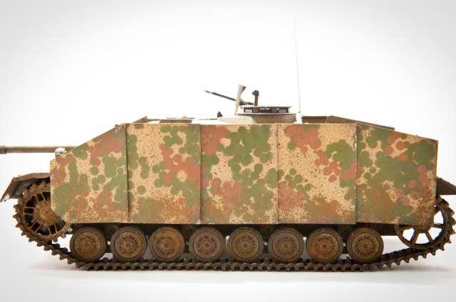 Скажу честно, в пластике не силен. То что увидел--понравилось, особенно "необычный камо". Я такой планирую на Пантере сделать. Не хватает провиса гуслей и копоти на выпускной трубе глушителя