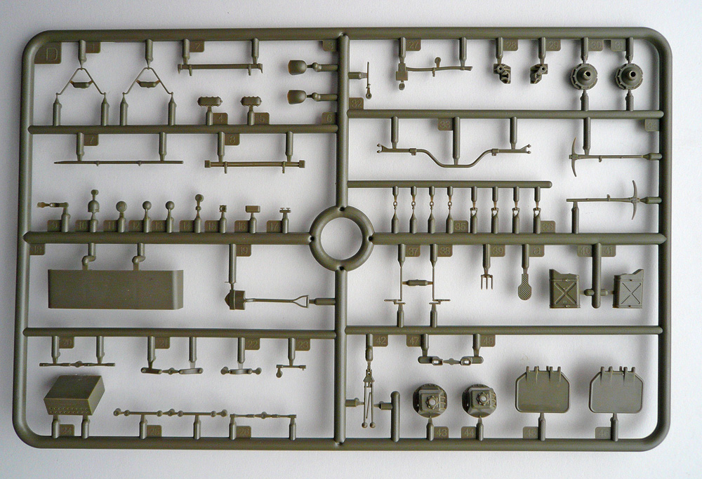 В коробке 5 рамок с пластиком, планка травления, металический ствол, рамка со стеклянными делалями, декали.