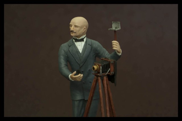 Итак, начало 20 века. Леди согласилась попозировать фотографу. Мастер использует новейшую портативную фотографическую камеру марки Instantograph производства компании J. Lancaster & Son.