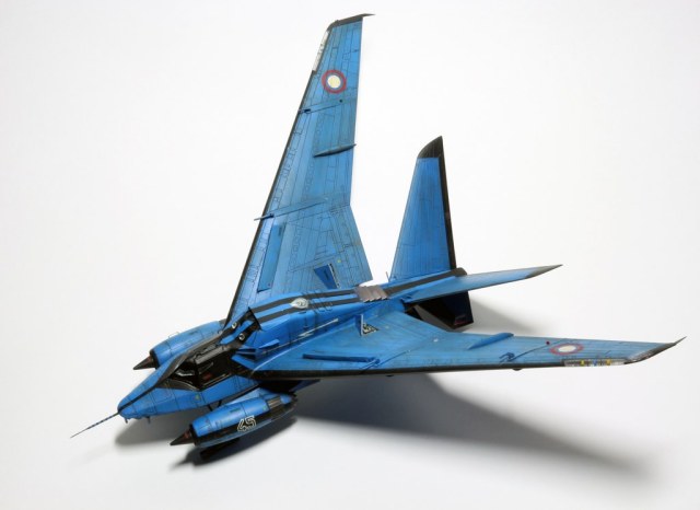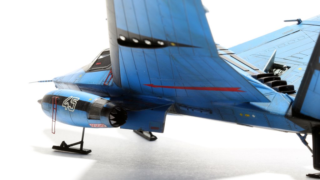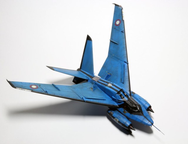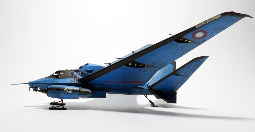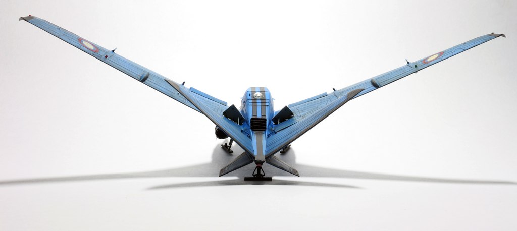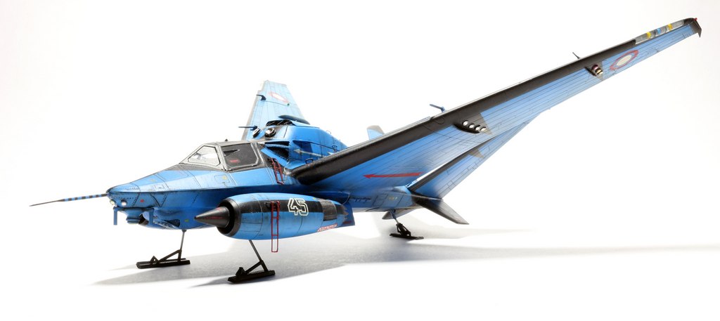 Ух, красив. Цвет радует глаз. Правда, шасси хлипкое, они же не выдержат посадку такой машины при, скажем, боковом ветре. Но лихая стреловидность нравится, спасибо.