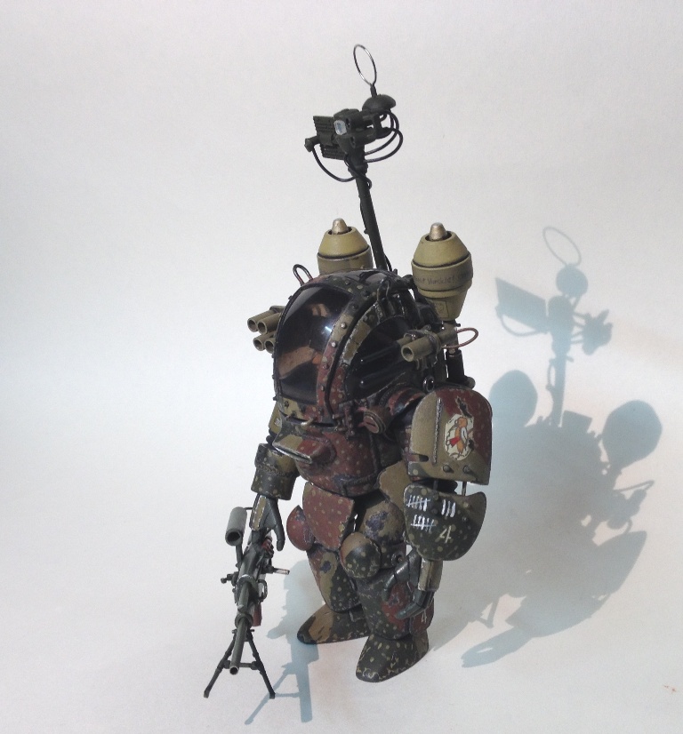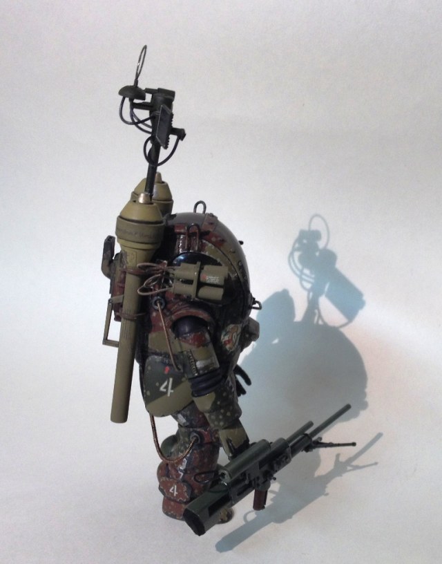 Только терзают некоторые сомнения, насчёт возможности самостоятельно достать фауст из-за спины, находясь внутри (!) костюма...