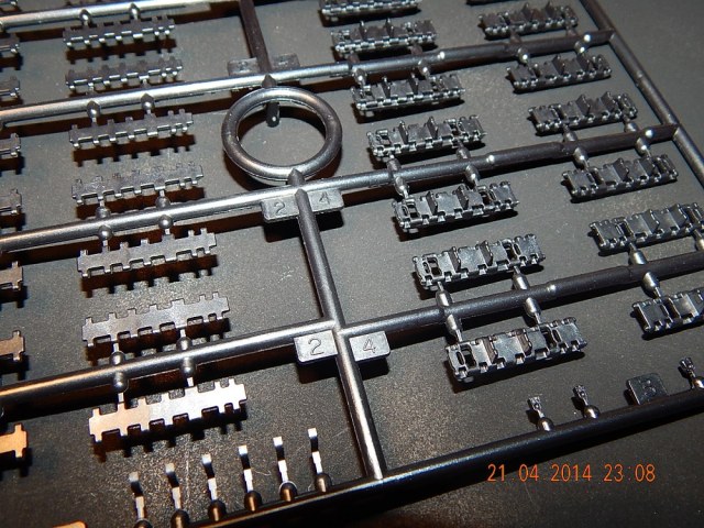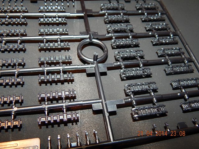 Траки среднего качества, есть немного облоя и следы толкателей, причем с лицевой стороны в углубления где их убрать почти невозможно. Плюс в комплекте идут крюки крепления траков на башне.