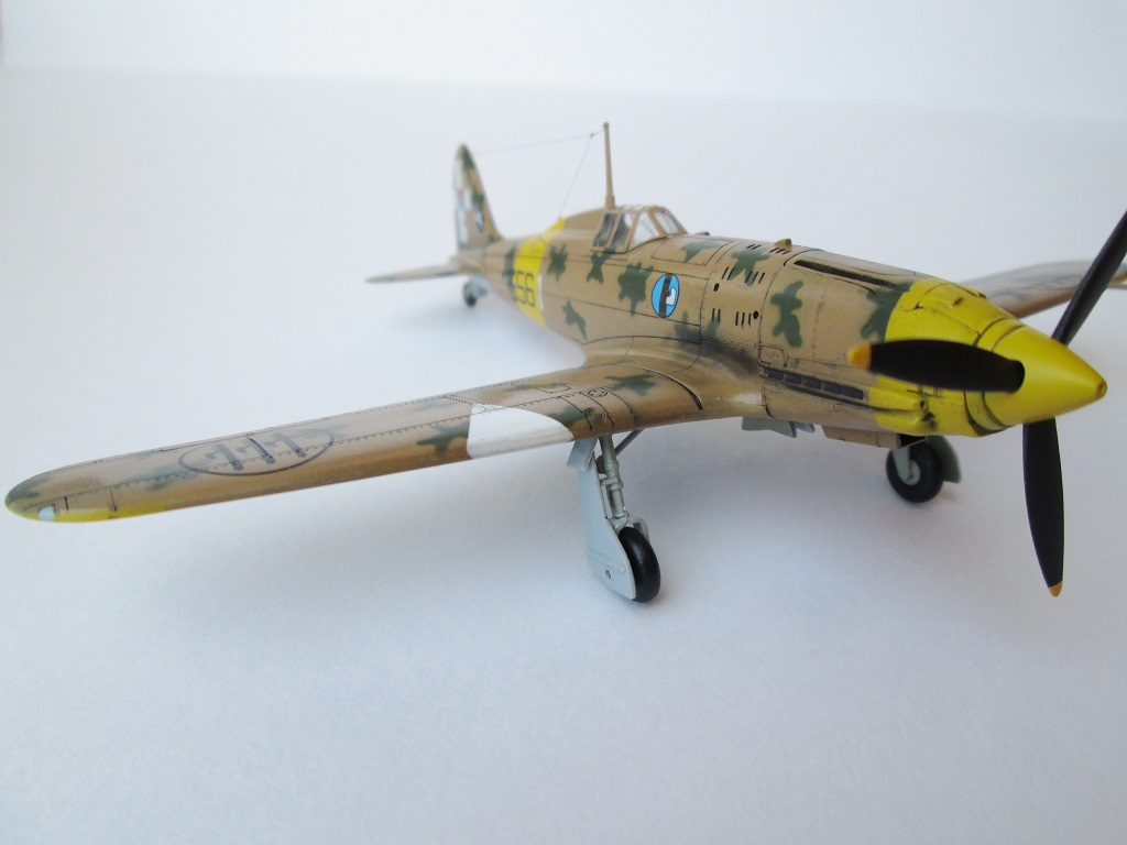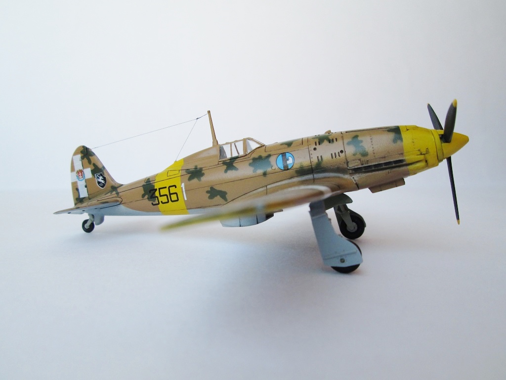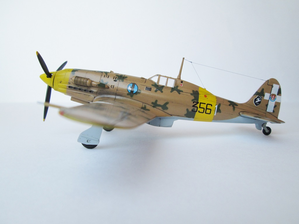 Не стоит прибедняться - очень даже недурно, как для изкоробки. Пару моментов, как по мне, стоило доработать - убрать "паровозную" клепку и утрированные провисы полотна, особенно на рулях высоты. А вот по бортовым номерам Вы ошиблись - итальянцы полюбляли зеркальное отображение. Белая единичка по обоим бортам шла позади желтого кольца.