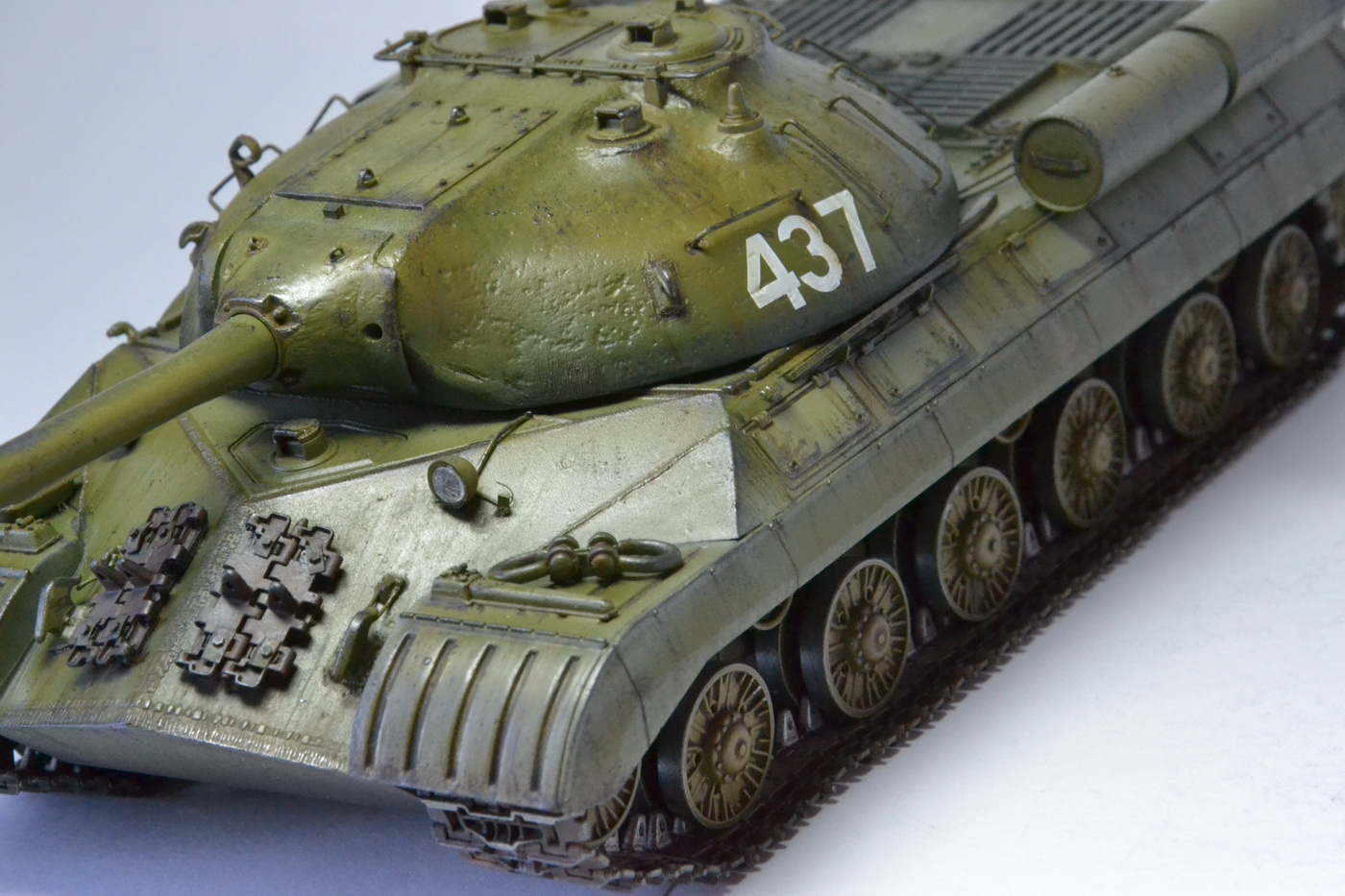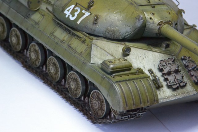 Хорошая работа, мощно танк смотрится. Только мне кажется, зря заржавили бронировку выхлопа.