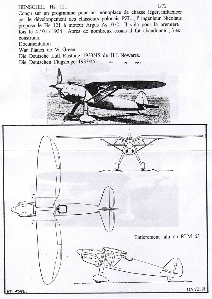 Истребитель и самолет повышенной летной подготовки Henschel Hs.121 впервые взлетел 4 января 1934г. Лётные данные самолёта были признаны неудовлетворительными. Серийно не строился. Более полную информацию по этой машине можно прочитать тут.