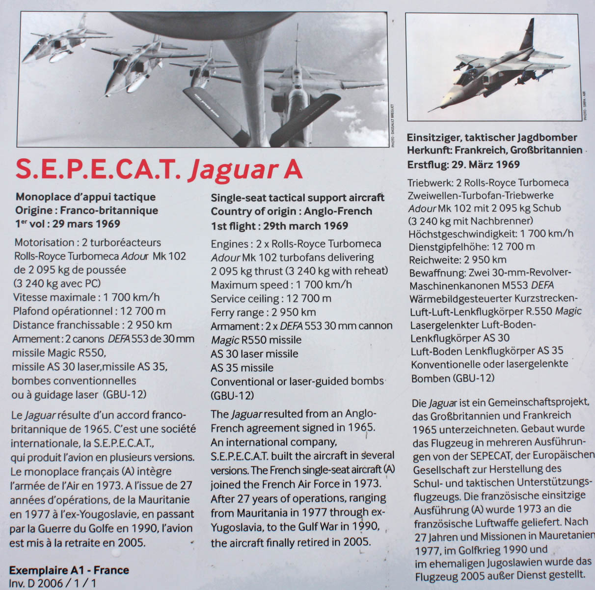 Очередной экспонат из французского музея Le Bourget, самолёт "Jaguar A". Про музей можно посмотерть общий обзор здесь