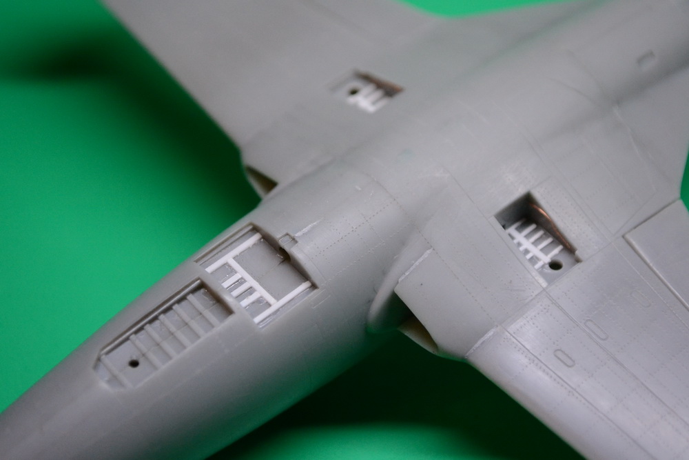 Красил Аканом, смывка маслом, лаки Акан. Расклепал, правда после грунта и покраски, клепа почти не видно. Добавил силовой набор основных стоек шасси и воздушного тормоза, навигационные огни из прозрачного литника. Может еще, что по мелочи, но сейчас уже не помню.