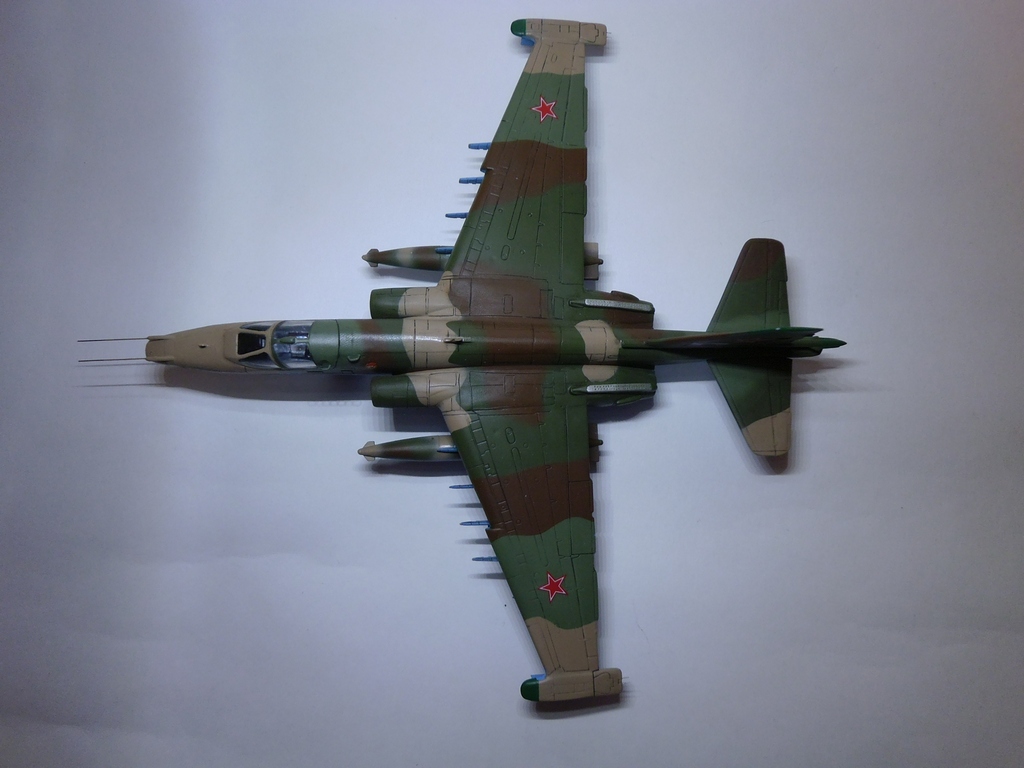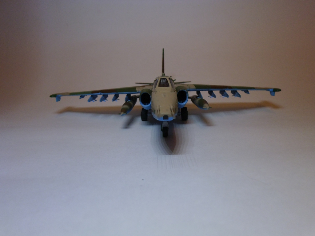 Доброго времени суток коллеги. Ещё одна из моих работ. Модель представлять думаю смысла большого нет. Доработок особо не делал,так по мелочи.Пару ручек,ПВД инсулиновые иглы,на пилоны крепления (правда без болтов) для вооружения,стекатели статики.Пачкать не стал,модели будут стоять на макете и свою функцию макетных моделей в таком виде я полагаю будут выполнять в полном объёме. Собирал сразу 4 модели,3 Су-25 и 1 Су-39. Особых проблем сборка не доставила,и в течении недели все были закончены. Привязки нет ни к какой ШАБ. КАМО правда у Су-25х примерно одинаков. Красил акриловыми автоэмалями,лаки тоже авто. Расшивку выделял Уайт спиритом с черной масляной краской. Вот вроде и больше сказать нечего. Надеюсь просмотр не разочарует. Буду признателен за конструктивную,развёрнутую критику. Заранее спасибо!