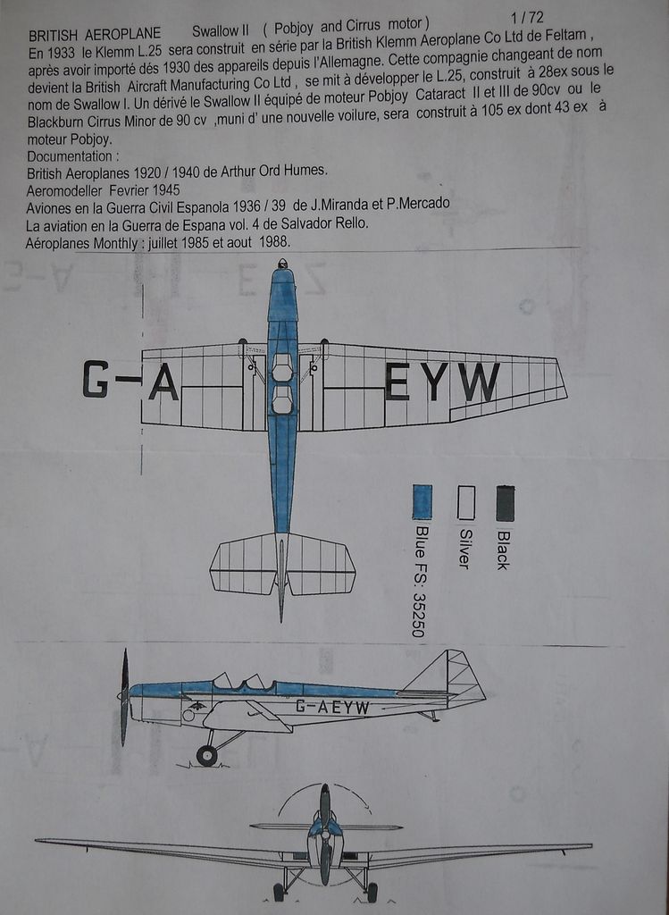 Английский спортивный самолёт Swallow II построен на British Aircraft Manufacturing (лицензионное производство немецкой фирмы Klemm) в 1935году. Всего было выпущено 135 экземпляров. Самолёт пользовался популярностью у частных владельцев и в аэроклубах. В годы войны часть машин использовалась в учебных школах. 17 самолётов пережили войну , а некоторые из них летали ещё в 2008 году.