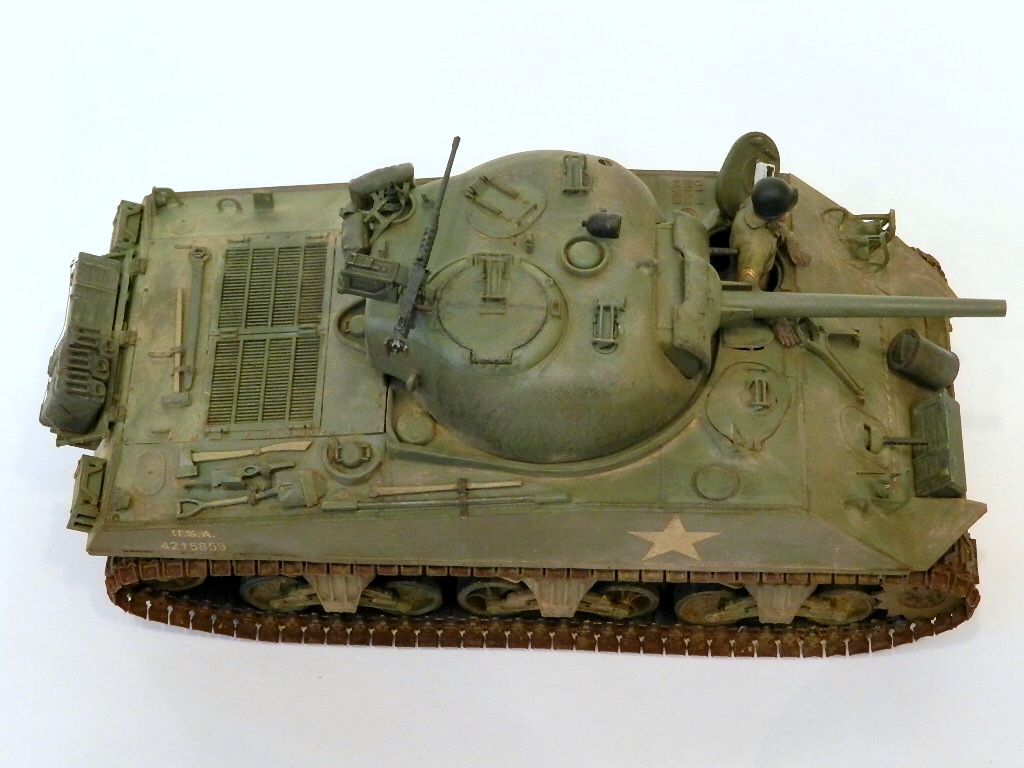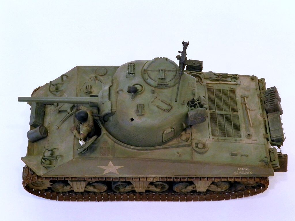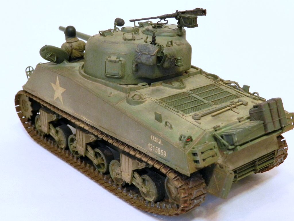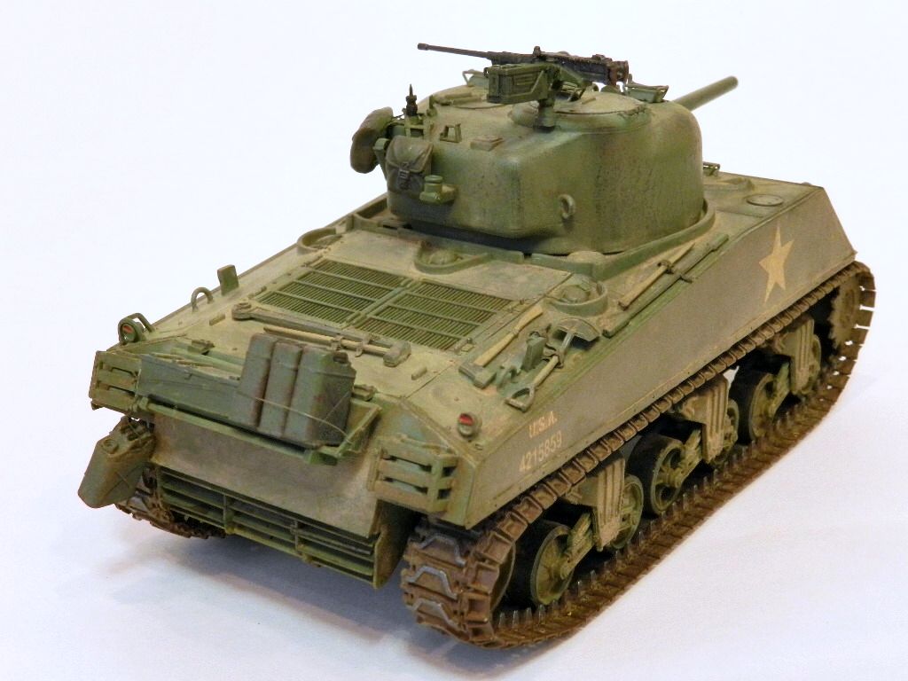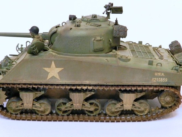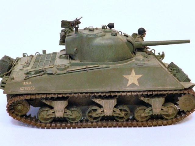 Здравствуйте,уважаемые коллеги и друзья.Разрешите представить вам ещё одну мою работу танк Sherman M4A3(75)W.Собрано всё как всегда из коробки.Красил "тамией",пылил пастельными мелками.