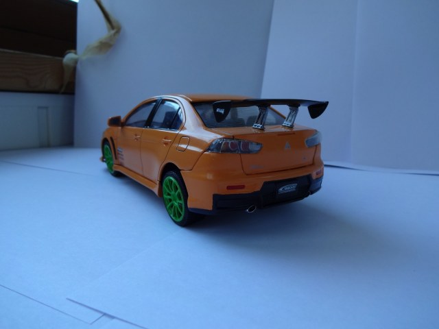 По модели, цвет обсуждать я думаю глупо, по тому, что спортивные машины как только не красят... вообще по всякому) Но вот качество окраски бяда. А как красилась? Аэрограф? Ну и с задней осью что-то не так
