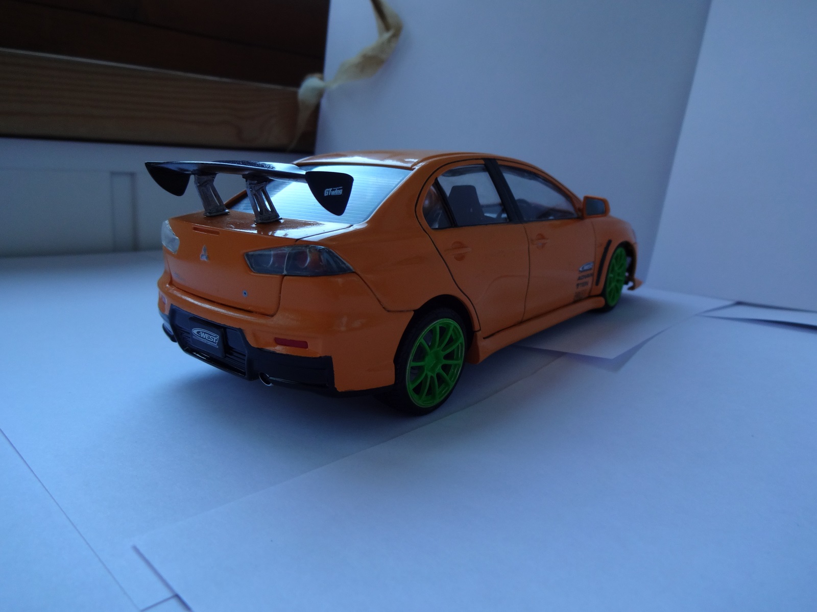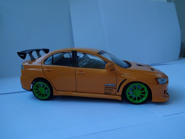Снимки темные. Центральная стойка не много не правильно покрашена.На дисках болты лучше выделить, слишком монолитно смотрится. А девятый Эво кто-то производит?..