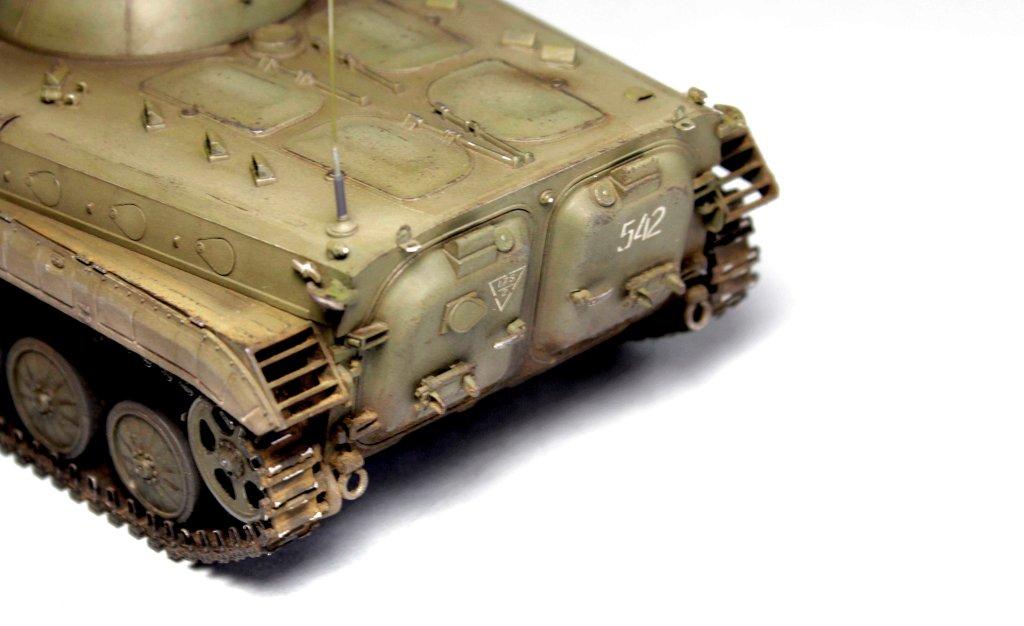 Собрал её на одном дыхании, практически из коробки. Заменил траки на Мастерклубовские (металлические), установил антенный ввод и саму антенну от Моделпоинт. Запасные траки на задних люках - то же заменил на смоляные (в мастерклубовских траках они были в виде бонуса наверное : ))))) ). Остальное - изкаробка.