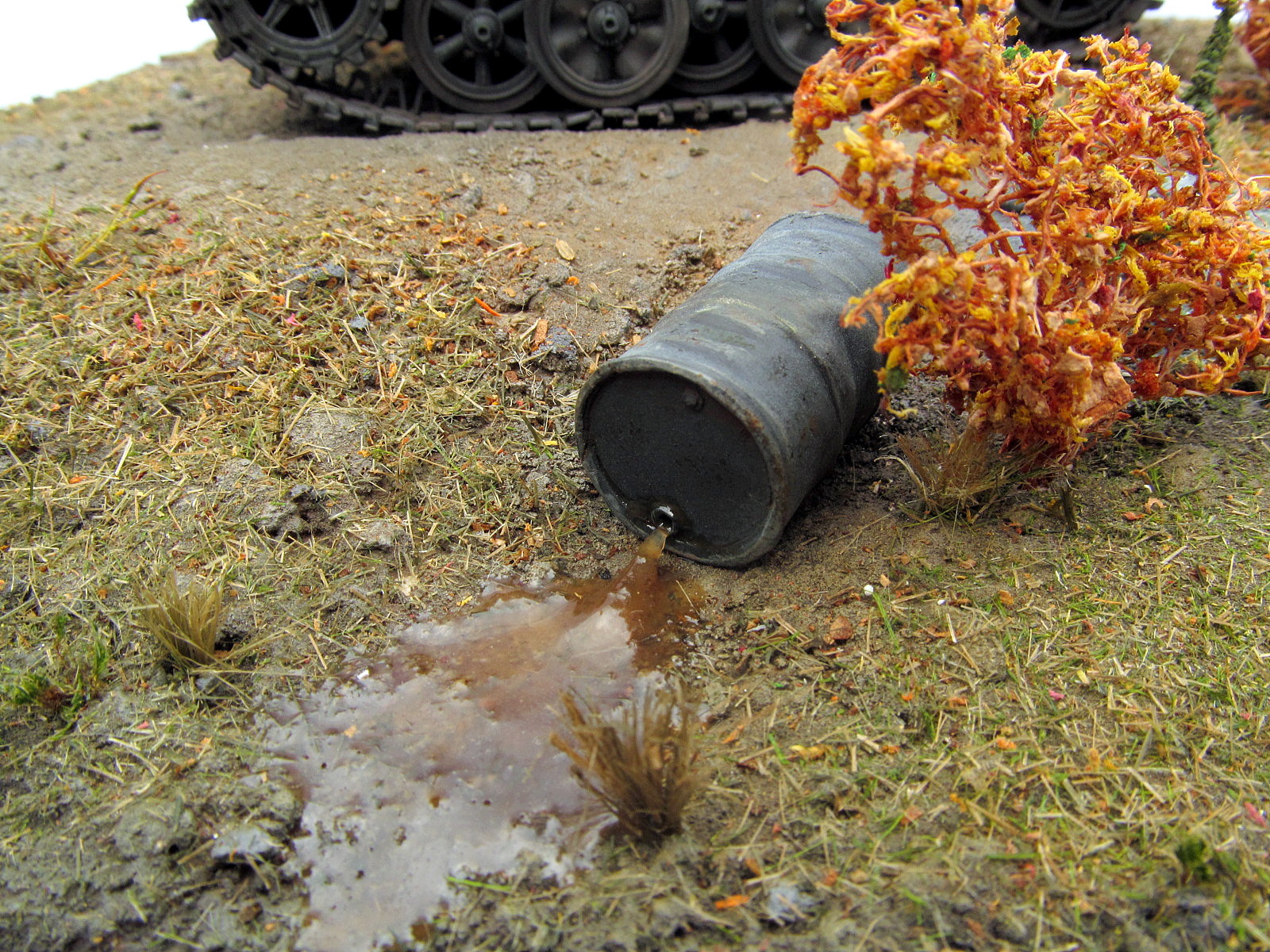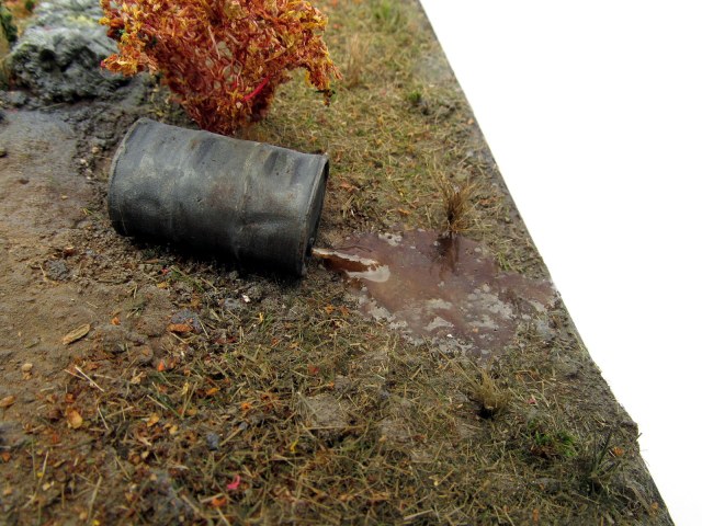 Работа никакой привязки ни к прототипу ни к местности не имеет, У вас может возникнуть вопрос по поводу опрокинутой бочки упавшая бочка лежит тут от недавно проезжающей колоны. Как понимаете 200л не за 1секунду выливаются.