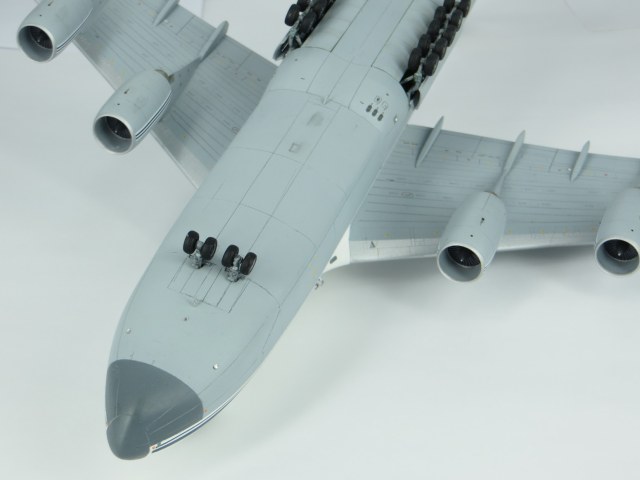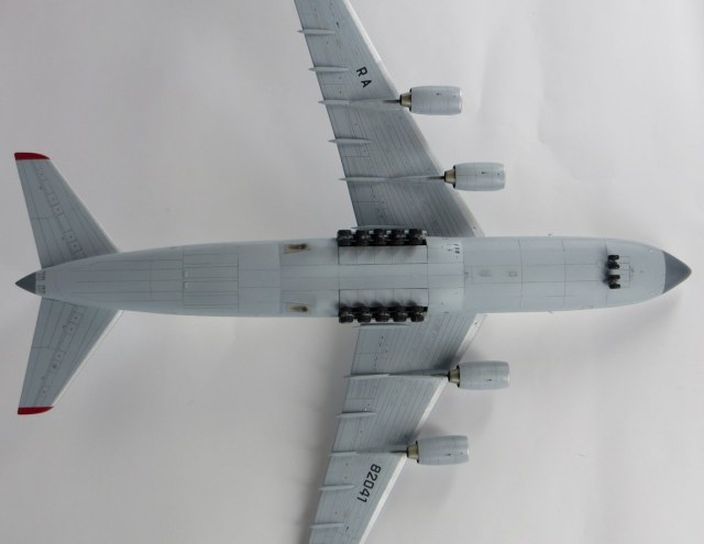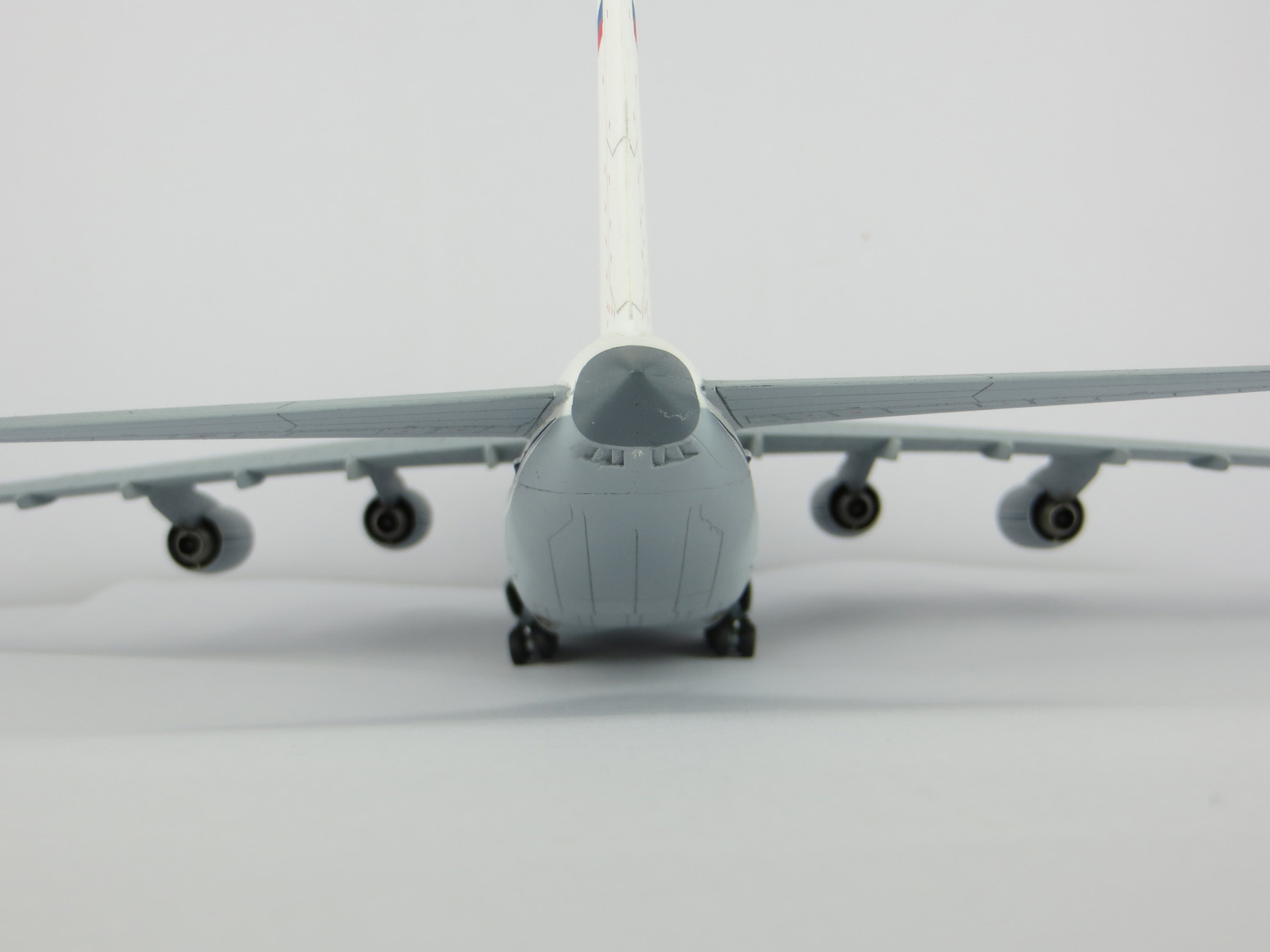 Супер монстр! Сделан чисто и аккуратно, смотрится очень хорошо, отличная работа! Подумываю тоже собрать такой, во мне борются любовь к большим правильным самолетам и легкая неприязнь к транспортникам. Опять же, его ливреи не очень мне интересны...