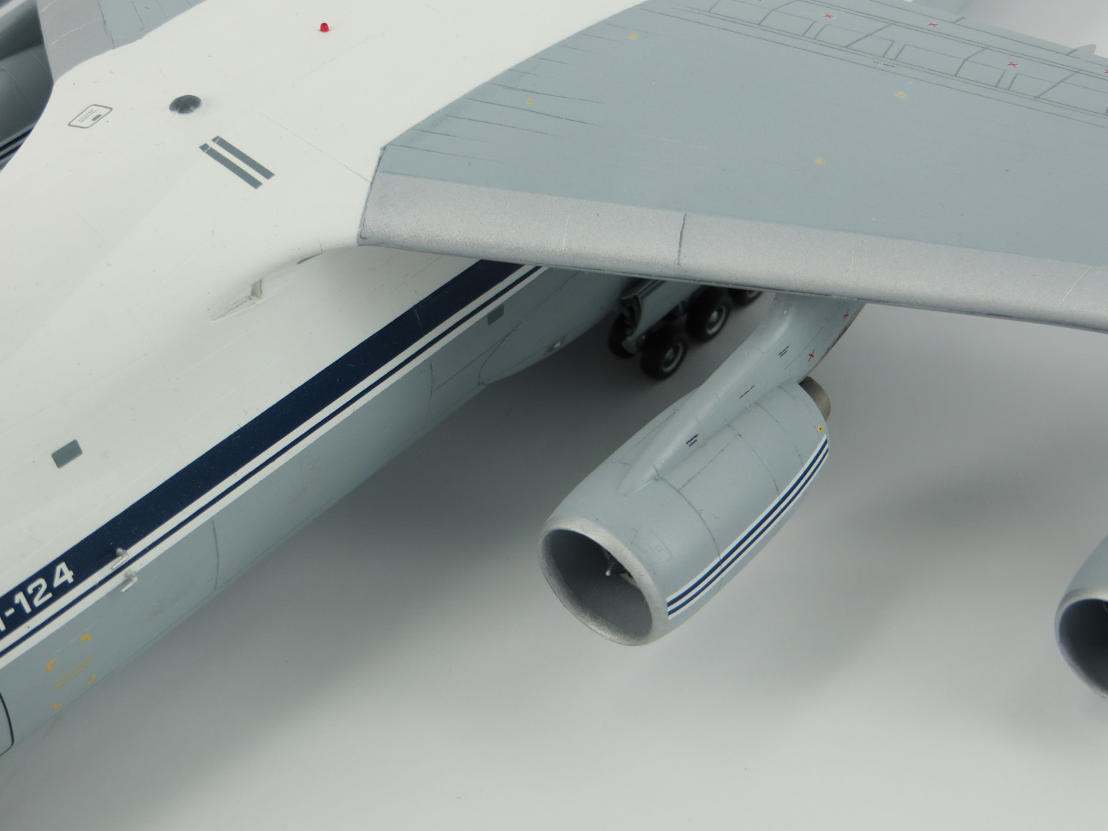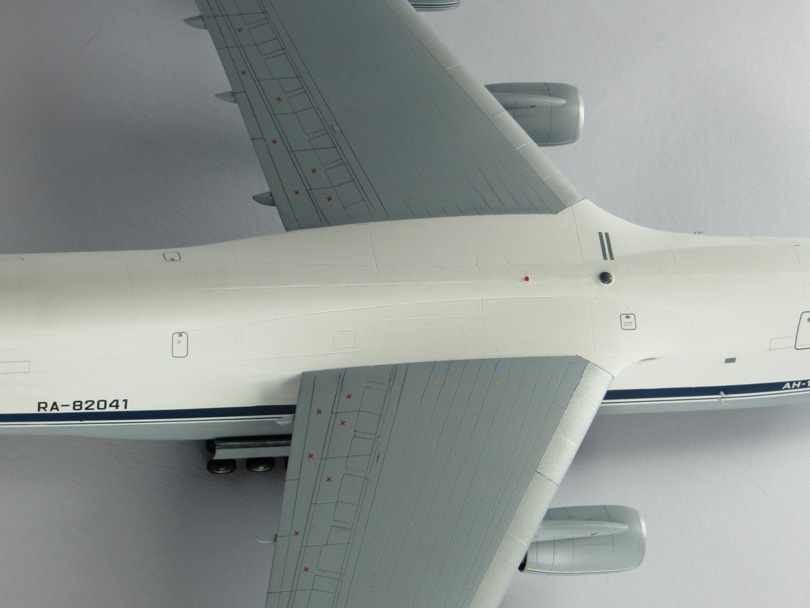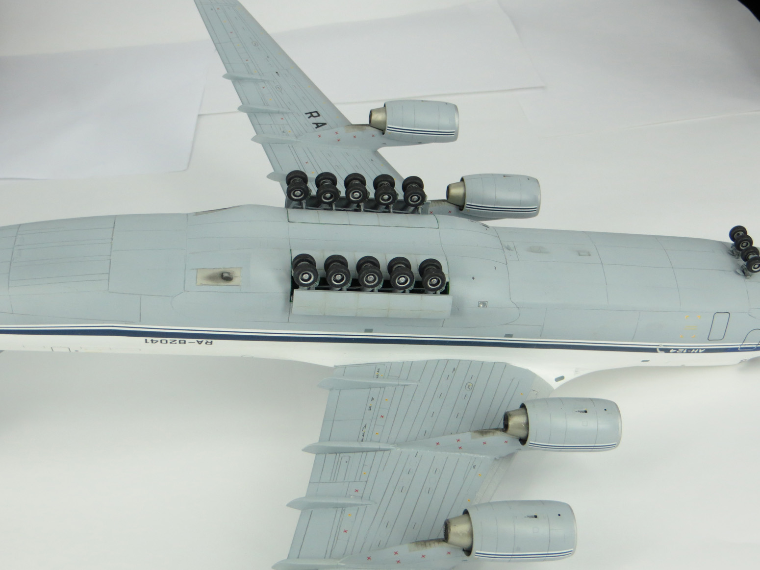 Добрый вечер уважаемые моделисты! Представляю Вашему вниманию свой долгострой - модель самолёта Ан-124 Руслан. Прототипом модели стал борт RA- 82041, самолёт, состоящий на вооружении ВТА ВВС РФ. Модель собиралась достаточно легко. В процессе сборки немного перегрузил нос самолёта, поэтому на всякий случай решил укрепить стойки шасси (старыми использованными микросвёрлами). Из доработок: