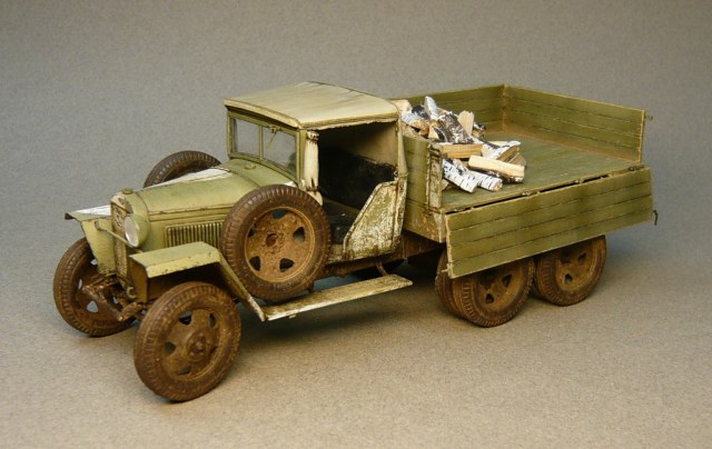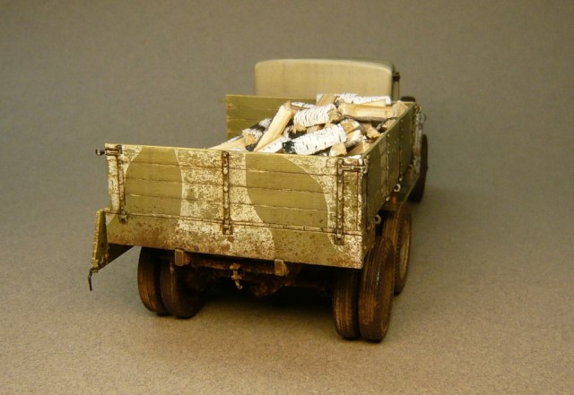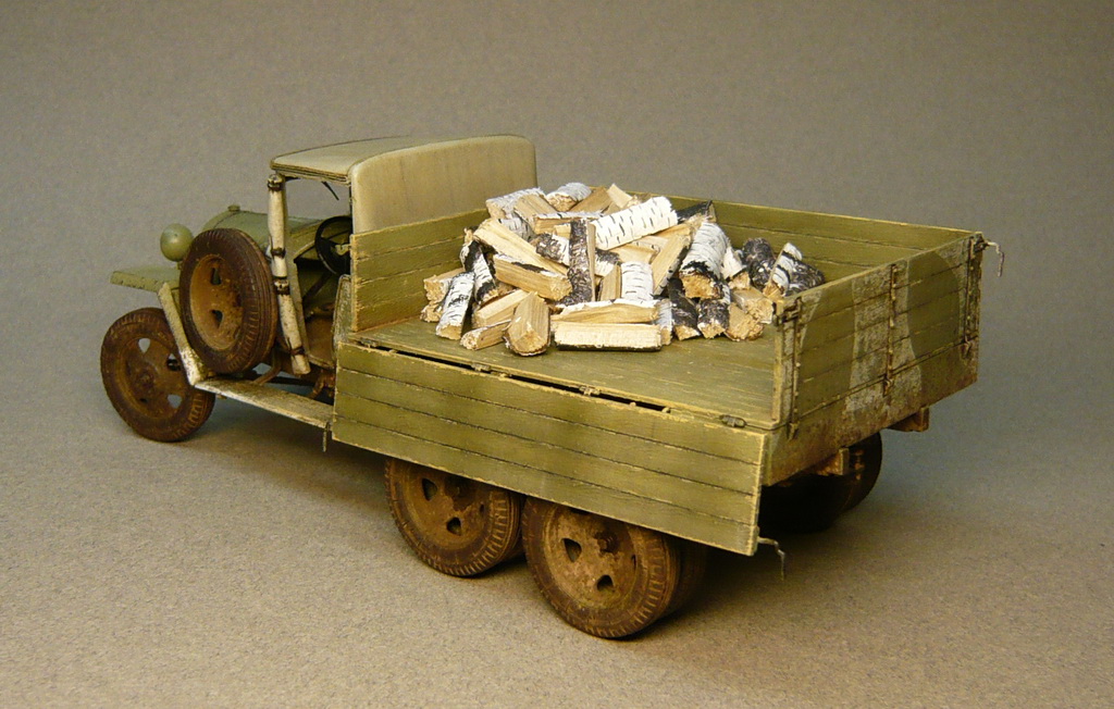 Отличная работа, все толково, я бы добавил в кузов еще мелких щепок, или просто немного припылил под дровами.