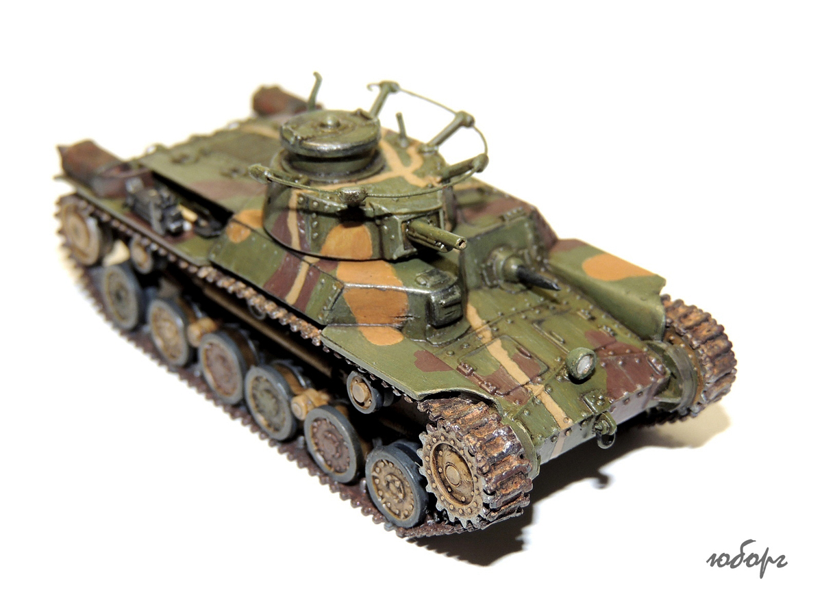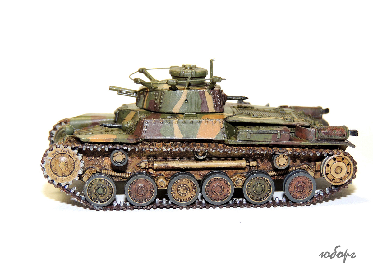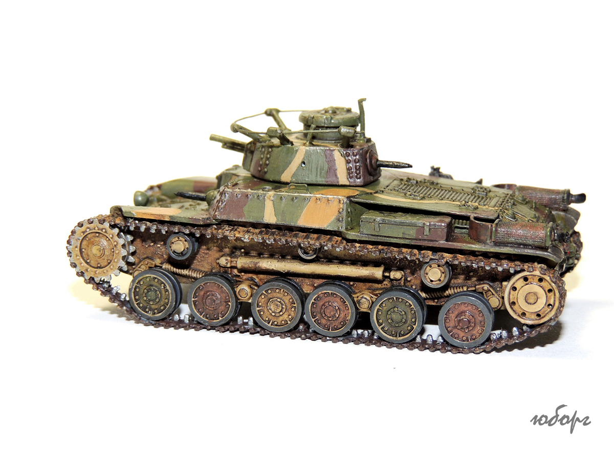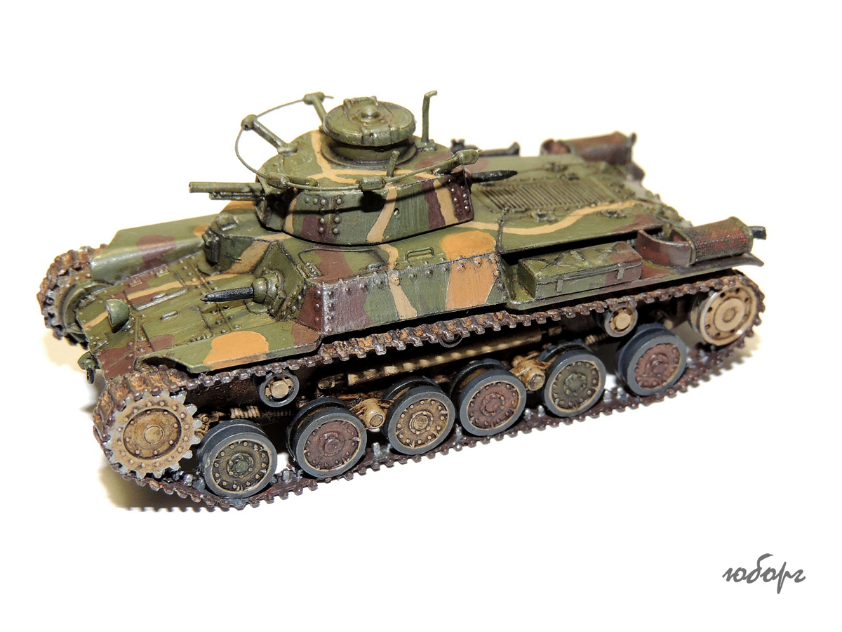 Здравствуйте коллеги! Выкладываю мой долгострой, от Airfix, японского танка "Чи-Ха". Как то изначально не пошла работа. Очень долго не мог решить вопрос по камо. Кое что пришлось изменить и добавить . Отдельная эпопея с гусеницами, сказать что это "Г", это ни чего не сказать. Они странно отреагировали на грунт, при этом сжались потеряв форму и эластичность.. После окраски, всё начало слазить вместе с грунтом и расползаться в руках(кто будет это "г" делать, грунт на эти гуси не ложить!). Короче всё пришлось клеить по кускам на циан. По самой модели, стыкуемость хорошая, но всё очень толстое, приходится стачивать.