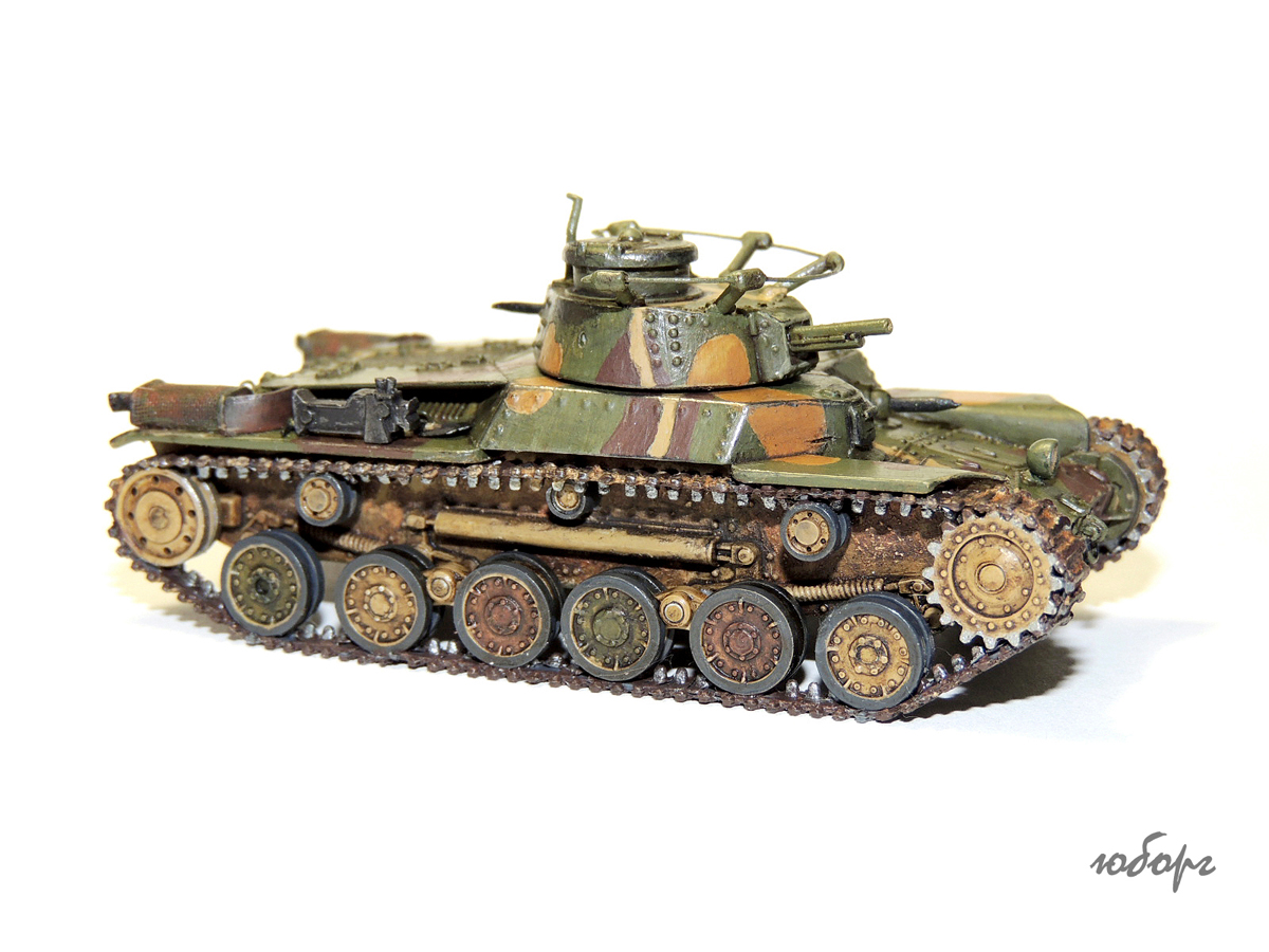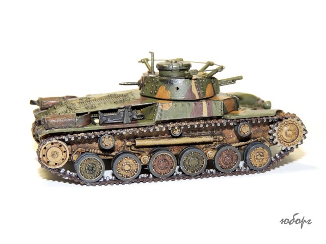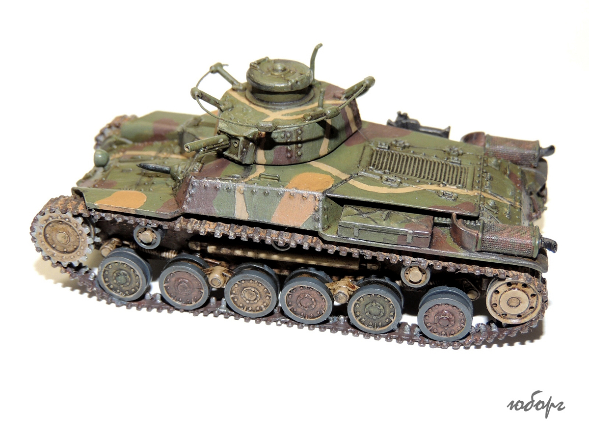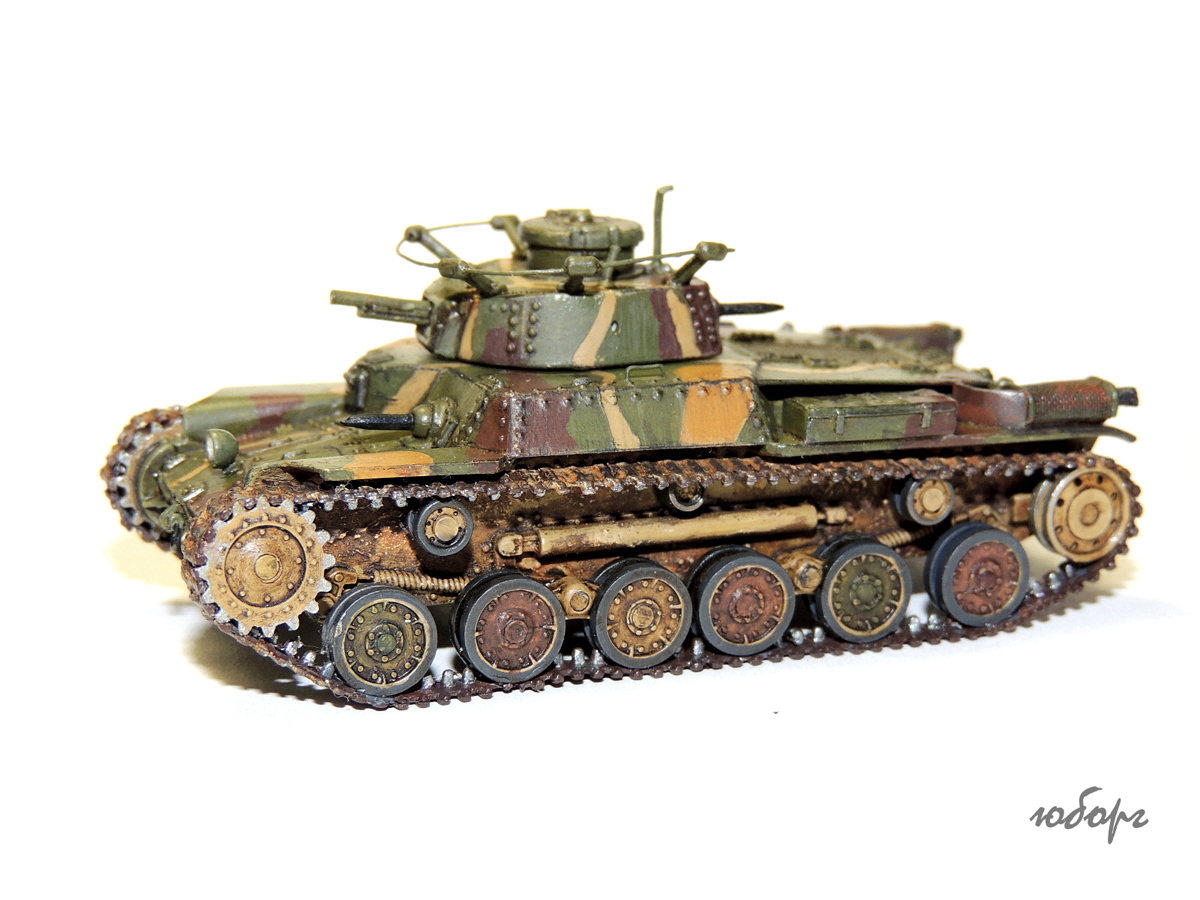 Здравствуйте коллеги! Выкладываю мой долгострой, от Airfix, японского танка "Чи-Ха". Как то изначально не пошла работа. Очень долго не мог решить вопрос по камо. Кое что пришлось изменить и добавить . Отдельная эпопея с гусеницами, сказать что это "Г", это ни чего не сказать. Они странно отреагировали на грунт, при этом сжались потеряв форму и эластичность.. После окраски, всё начало слазить вместе с грунтом и расползаться в руках(кто будет это "г" делать, грунт на эти гуси не ложить!). Короче всё пришлось клеить по кускам на циан. По самой модели, стыкуемость хорошая, но всё очень толстое, приходится стачивать.