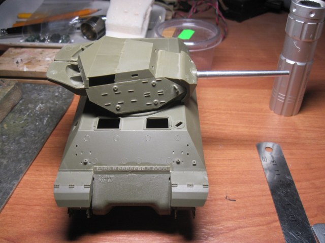 Представляю Вашему вниманию модель американской САУ М10 "Росомаха". Набор ко мне попал в полусобранном виде(в конце фотография исходника), однако все равно я с ним провозился достаточно долго. Во-первых, предыдущий владелец собирал предлагаемую инструкцией позднюю версию с башней Duck-Bill. Мне она не нравится внешне, но на литниках был комплект дателей, позволяющий сделать и предыдущую модификацию. В связи с чем башня была полностью разобрана и собрана заново в желаемой модификации. Во-вторых, мой товарищ не стал заморачиваться с деталировкой интерьера. Интерьер дается в наборе, но в довольно упрощенном виде. Я немного доработал его, опираясь на найденные фотографии, а так же на Академовскую модель, в которой дается более детальный интерьер.
