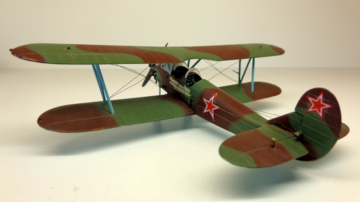 Эта модель была мной сделана в конце восьмидесятых годов прошлого века. Правда, не в образе "грозного ночного бомбардировщика", а как раз уже мирной учебной машиной из какого послевоенного чешского аэроклуба. Кто-то из чешских коллег присылал мне журнальные вырезки с цветными схемами окраски в комплекте с декалями. Так и появилась на свет эта модель. Тогда я очень тщательно воспроизвел камуфляжные пятна, используя в качестве масок пластилин, о существовании малярного скотча я ещё не подозревал. Кстати, пластилин использовал тот, которым были замазны оконные рамы, так как он не оставлял жирных пятен на краске, в отличии от "свежего" из детских наборов. Вас уже "улыбнули" растяжки и тяги из медной проволоки? Вот такая была у меня "технология". Правда, первоначально они имели более натянутый вид, а вот последующие "хватания пальцами" и не только моими, придали такой неказистый вид. Ну и деки подпортили дело, не "легли" как надо.