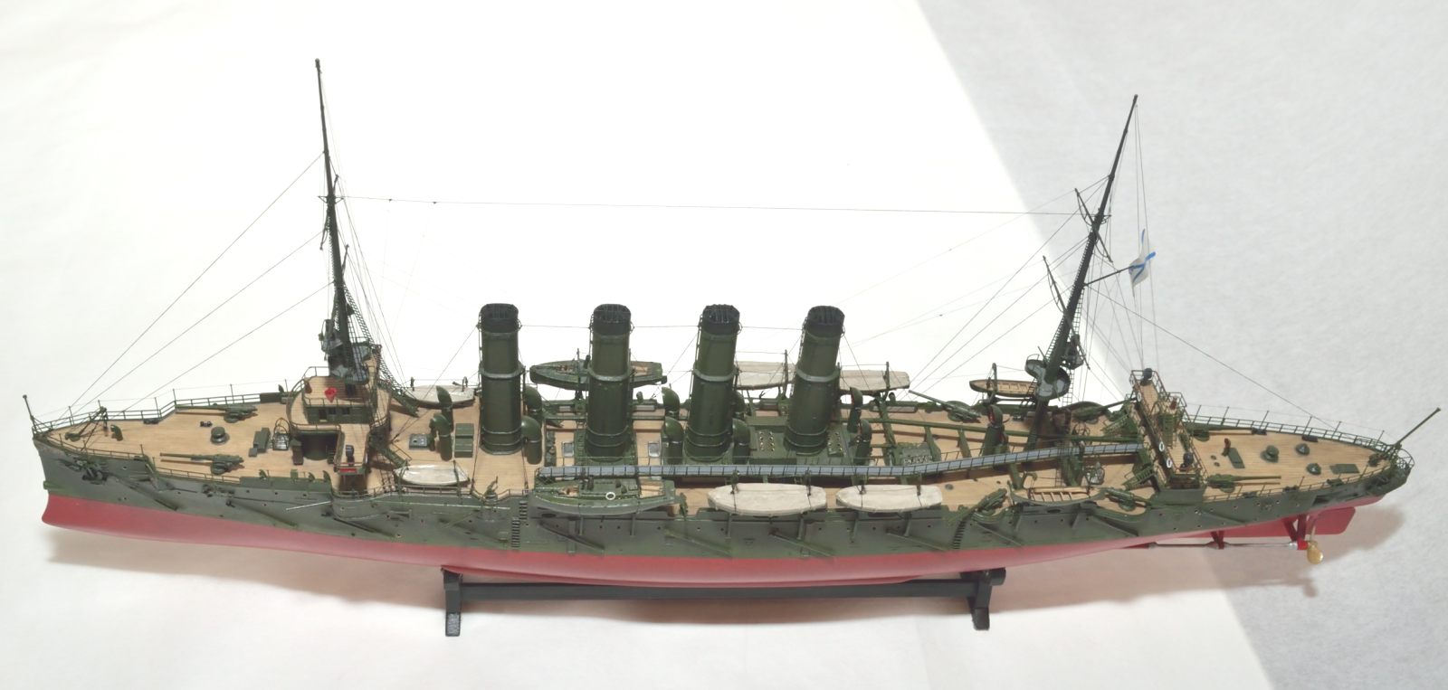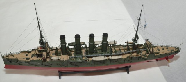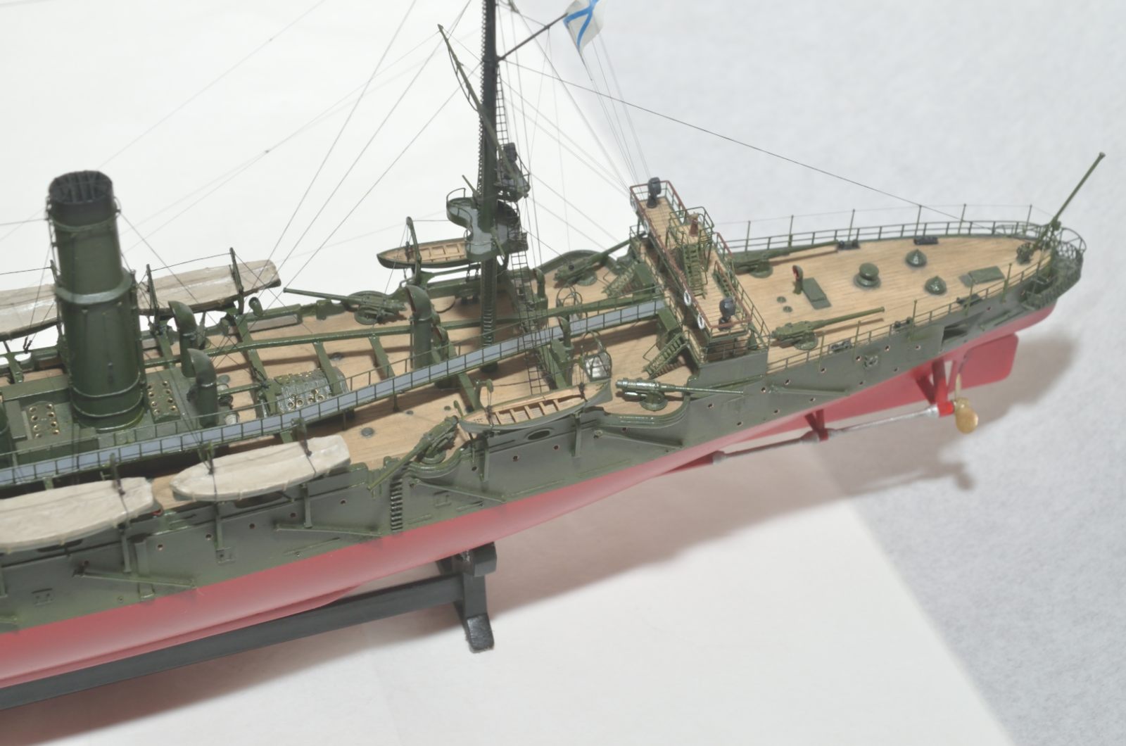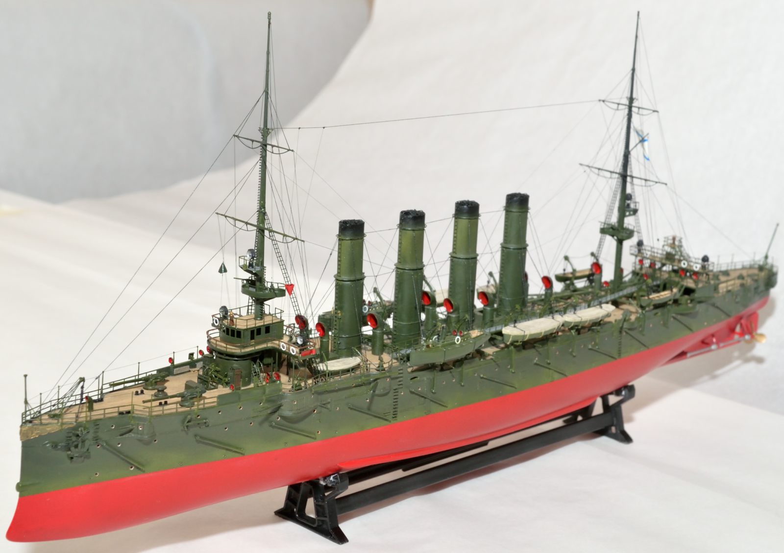 Модель самого знаменитого крейсера русского императорского флота в масштабе 1/350, построенная на конец октября 1903 г. Как оказалось, это не только самый знаменитый русский корабль, но и самый спорный и загадочный! Сколько различных версий о его подвиге было выдвинуто, сколько копий сломано в баталиях наших современников да и не только об итогах того героического боя, а долгая и полная неожиданных поворотов жизнь данного корабля только добавляла ему все новые истории и даже легенды.