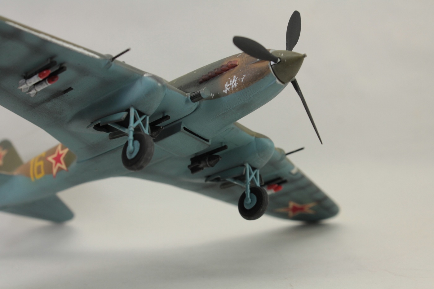 Хорошая модель, но сколы краски не удались (или опять скотч виноват?). Окраска РС неправдоподобна. Жаль, потеряли противовес руля поворота. Заметная деталь в облике Ила.