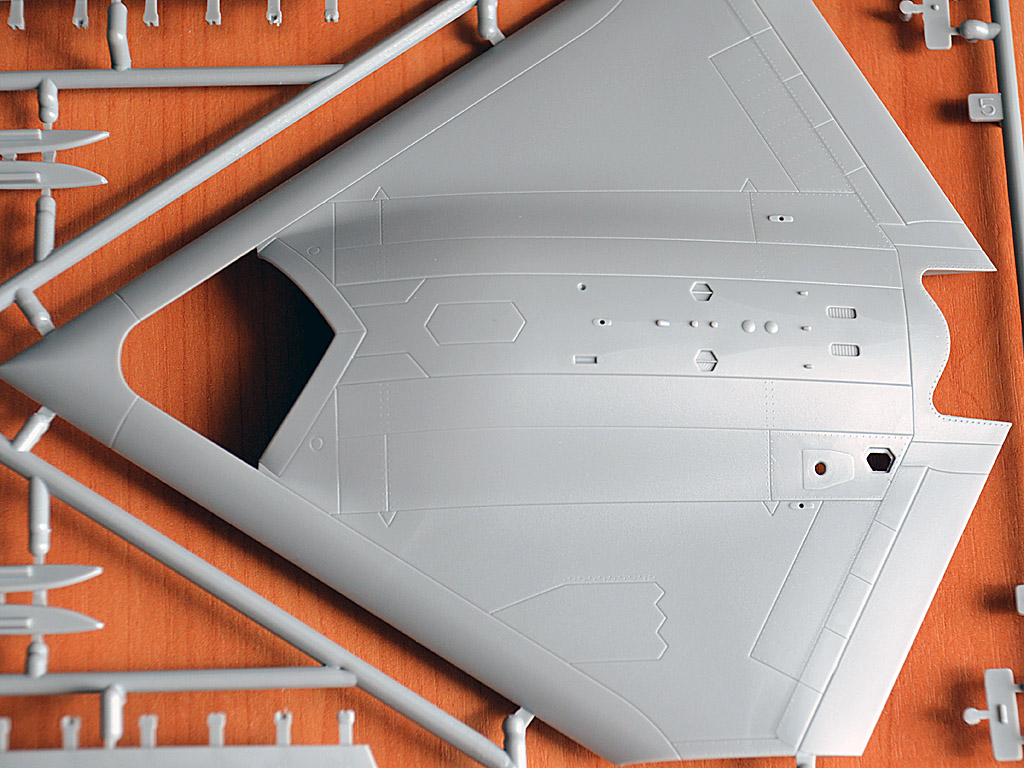 Очень порадовала возможность сделать дрона со сложенными крыльями. Причём, благодаря сменным деталям (обведены красным), можно в любое время в зависимости от желания, меняя вставки в крыльях, делать как раскрытые крылья , так и сложенные. Размеры дрона тоже приятно удивили. Он соизмерим с F-18.
