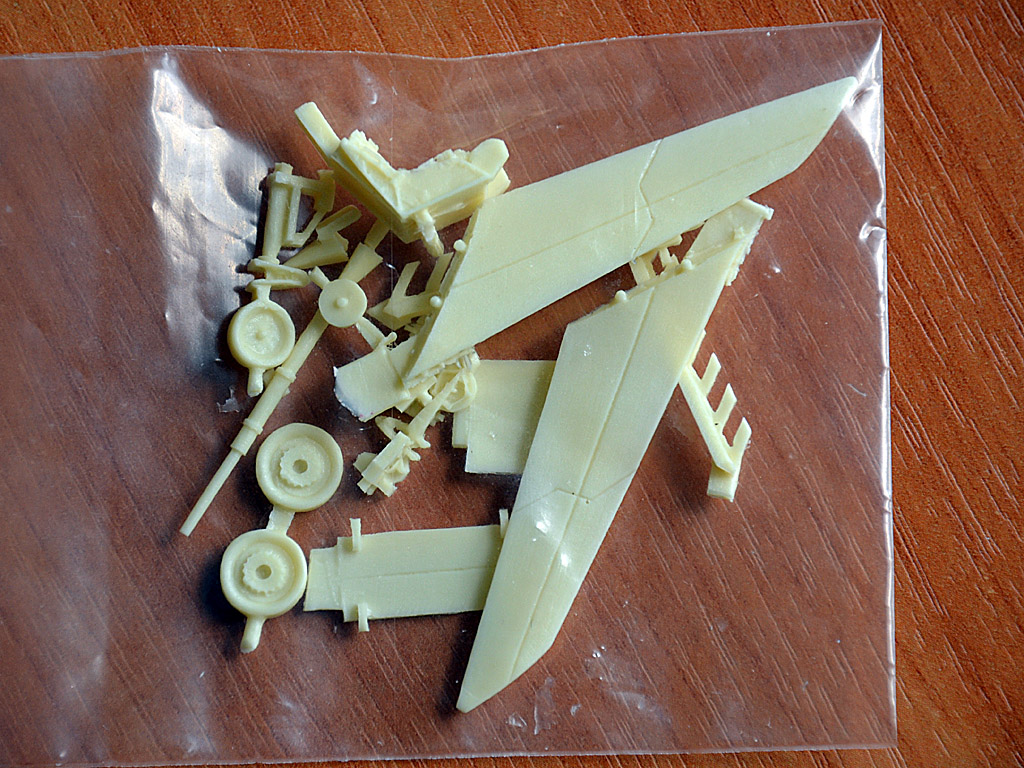 Смола. Качество для любителей запилов. Корпус имеетнебольшую крутку, но поправимую. Данный вид смолы очень хрупкий. Крошится, как будто сделана из замороженного теста. Ломкая. Работать надо очень аккуратно. Минимальный набор деталей, но и у проотипа особо ничего навороченного не было. Фонарь пластиковый, не особо прозрачный. Придётся поработать шлифовальным бором и Футурой. Декаль только два элемента на аварийное открытие фонаря.