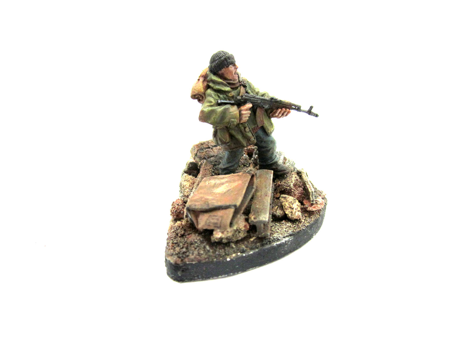 Фигурка а-ля "сталкер" размер чуть больше-28 мм. Подставка самодел. Глаза страшные, но как могу, так и сделал. Автомат кривой, но это максимально сколько можно выпрямить без повреждения.