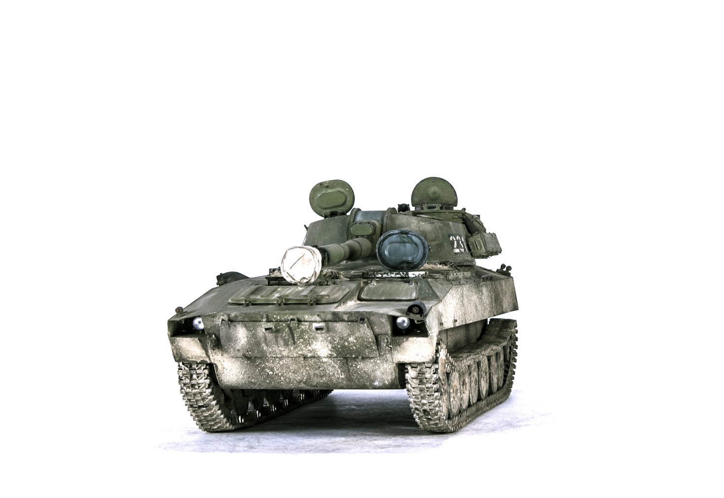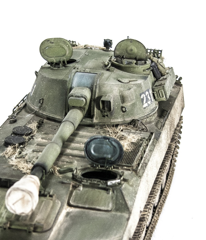 Мелких переделок было очень много, все они проводились по фотографиям реальной машины под номером "231", во время учений ТОФ на приморском полигоне "Клерк", конечно с добавлением мелких художественных изменений. Если это смотрит настоящий экипаж, настоящей машины "231" и я накосячил - мужики, простите. Номера и тактические знаки нарисованы с помощью шаблонов собственного производства. Окрашивалась модель красками фирмы "Gunze", химия и пигменты всех известных фирм в этой области.