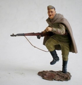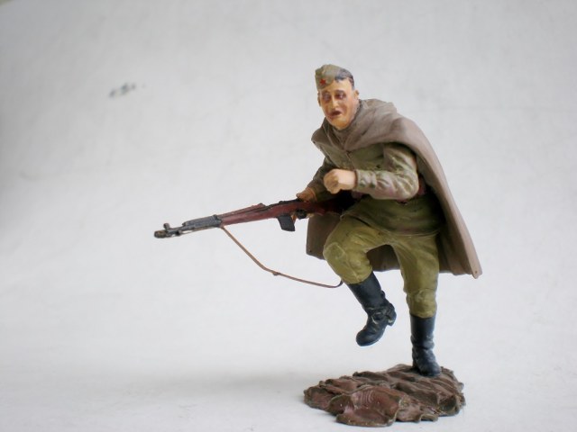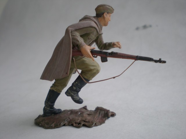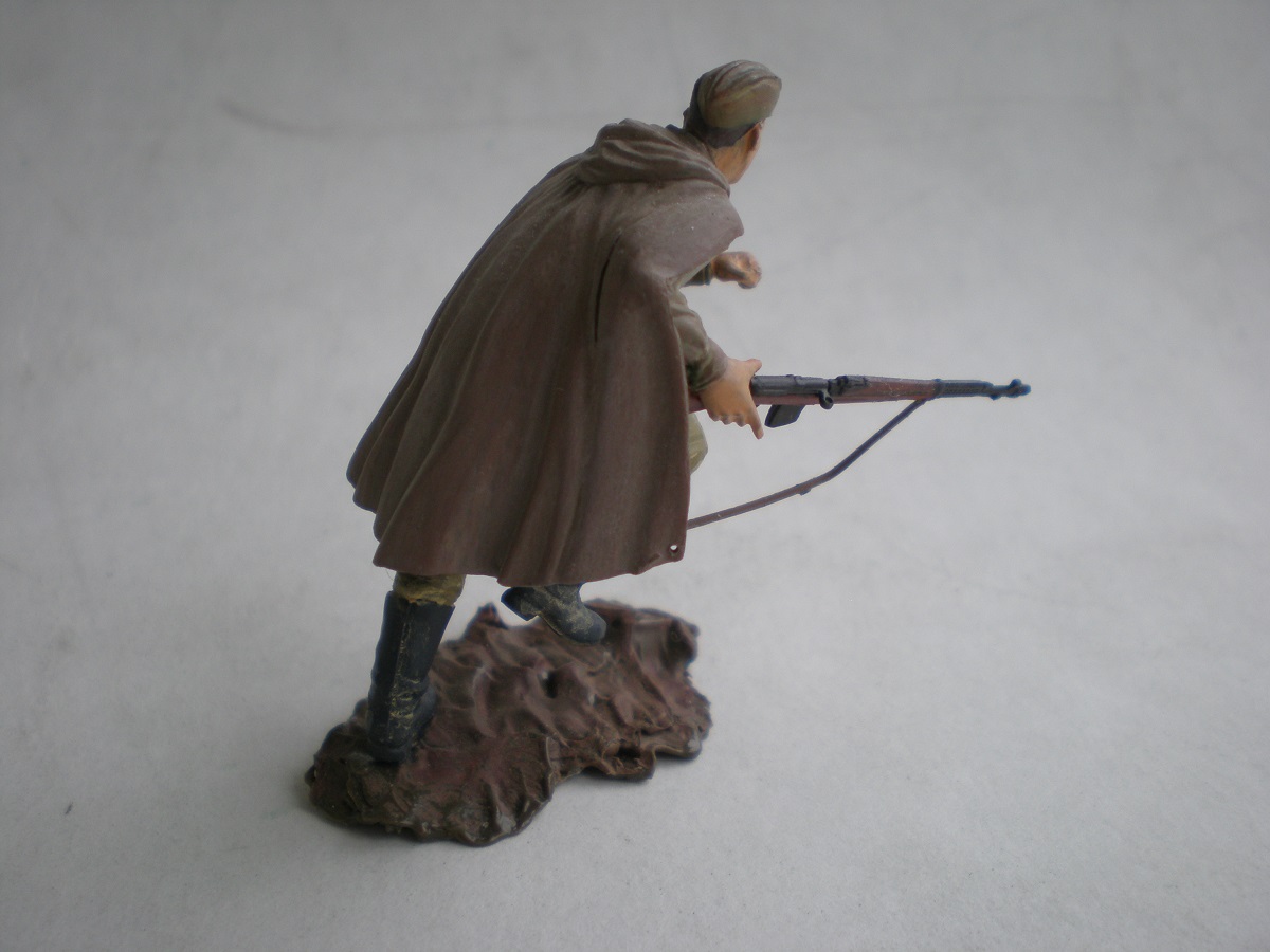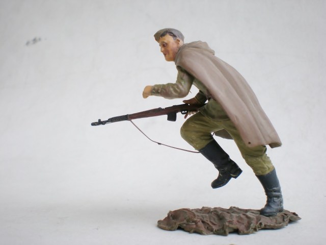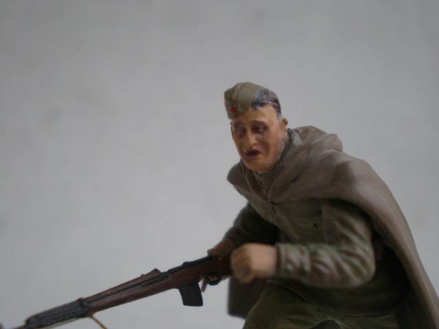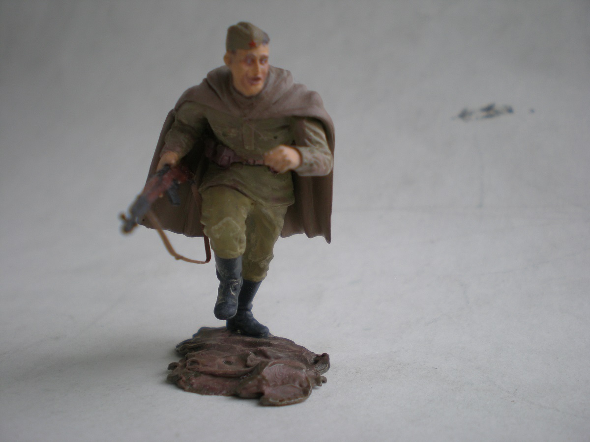 Ещё в январе задумал сделать группу бойцов, идущих на штурм высоты в Заполярье, лето 1941-го. Однако из-за разных проблем к 9-му мая сделал только одного бойца из набора Russian army assault infantry. Более всего в теме меня привлекло то, что на рубеже Западной Лицы бойцы были как правило в плащ-палатках (что очень редко кто делает) и вооружены "Светами". СВТ позаимствовал у Звезды № 1, ну и немного перепилил фигурку от Тамии, придав плащ-палатке более достоверный вид.