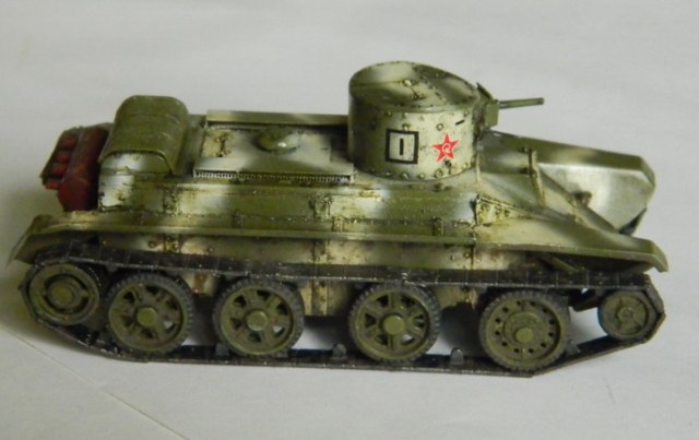 ходовая-на мой взгляд не удалась;стыки полунаборных гусениц бросаются в глаза(имел ту же проблему-потому свой бт-5 сделал на колесном движителе)ну и традиционные для УМа переразмеренные протекторы