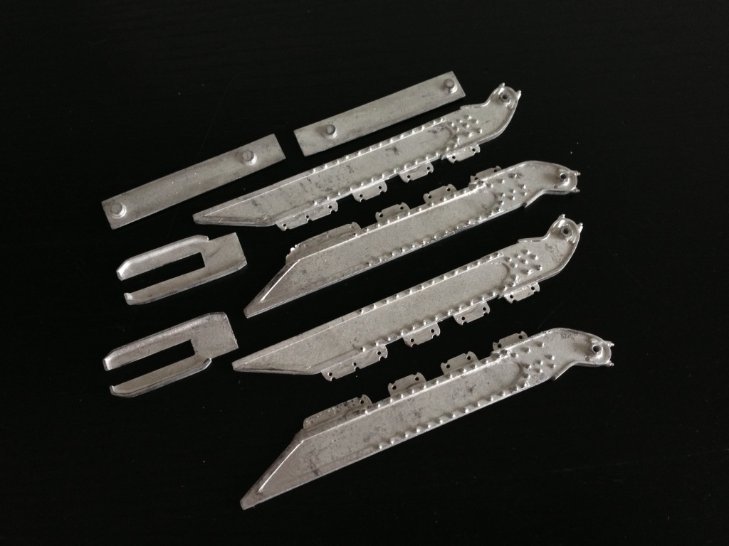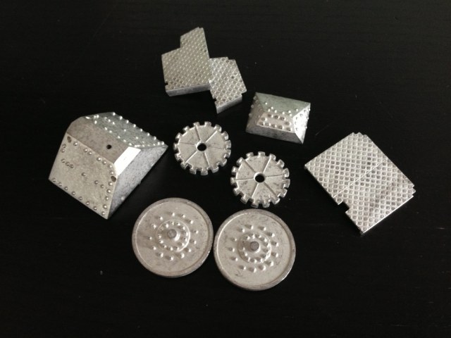 Модель полностью из металла: фототравление из латуни, бронза, белый металл. Траки наборные. Цепи из бронзы. Большинство петель люков, дверей, лючков выполнены подвижными.
