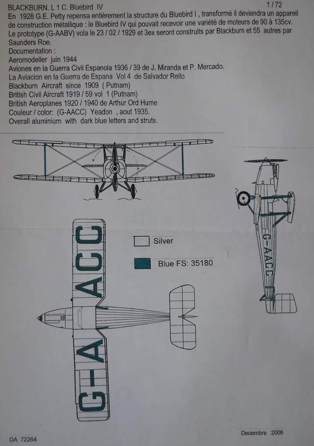 В наборе даётся модификация самолёта L.1С BluebirdIV.