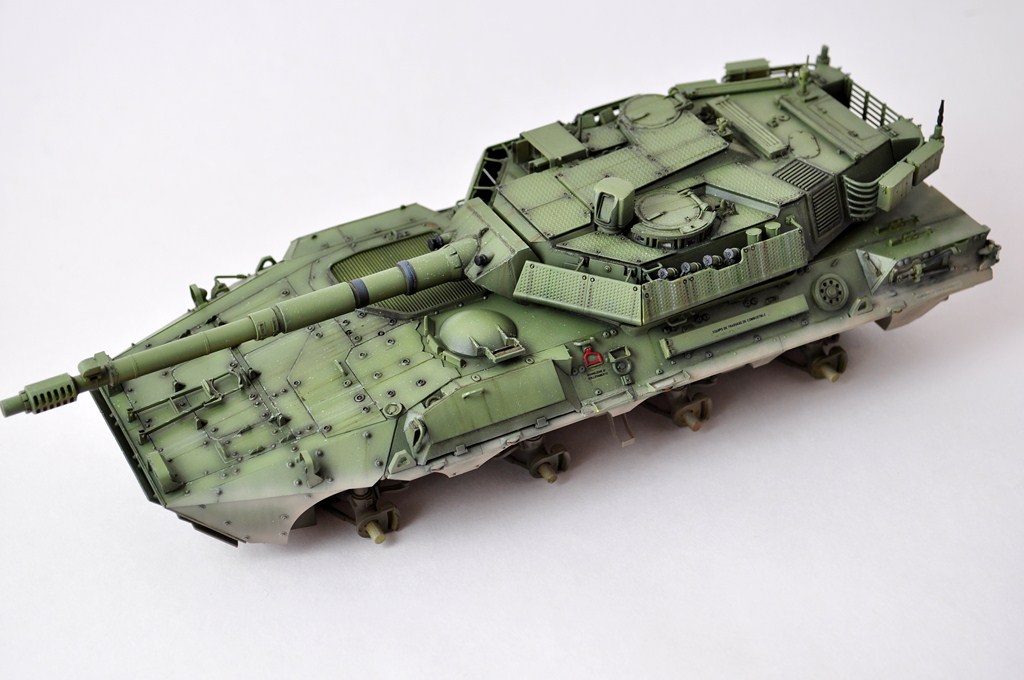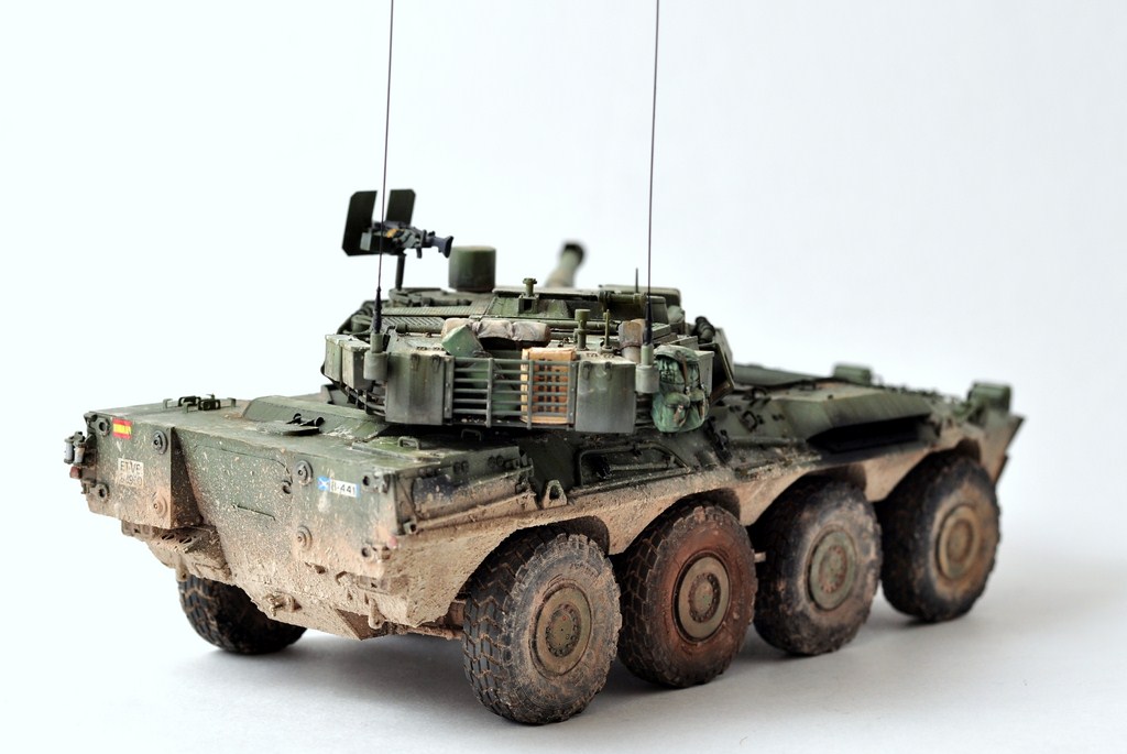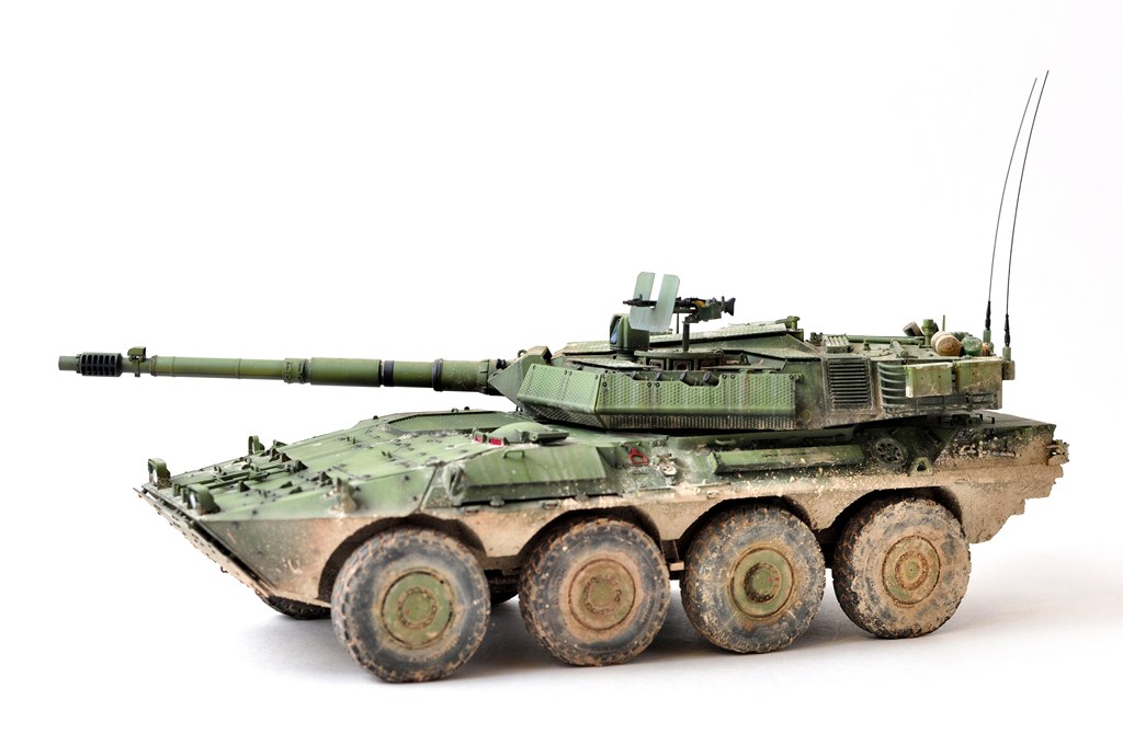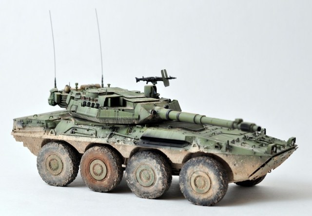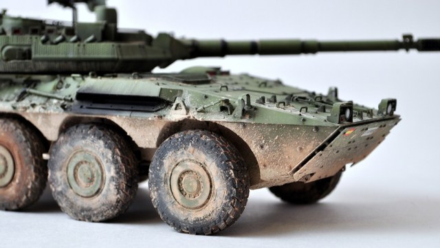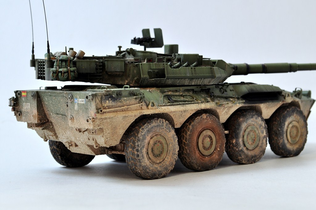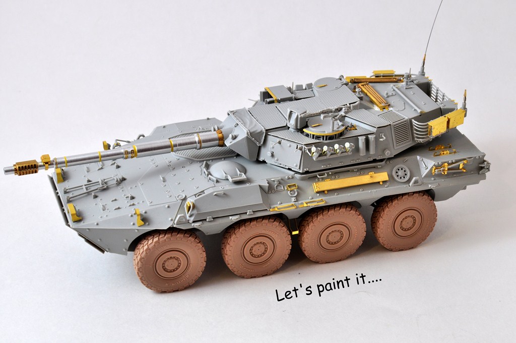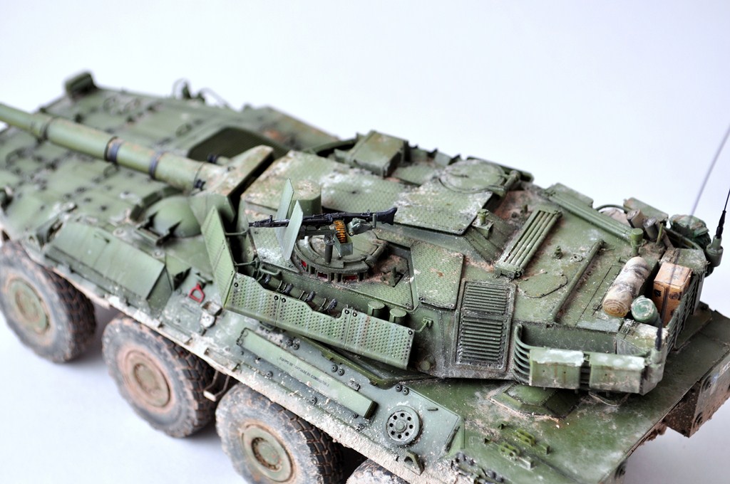 Довольно хороший набор, хоть и не первой свежести. Очень много мелких деталей которые на финише выглядят очень гармонично. Машина низкая, но длинная. В сборке помогали колёса Def.Model, травление Voyager и ствол RB. Как ни крути, а колеса у Дефа лучшие и преображают любую модель на колесном ходу.