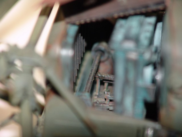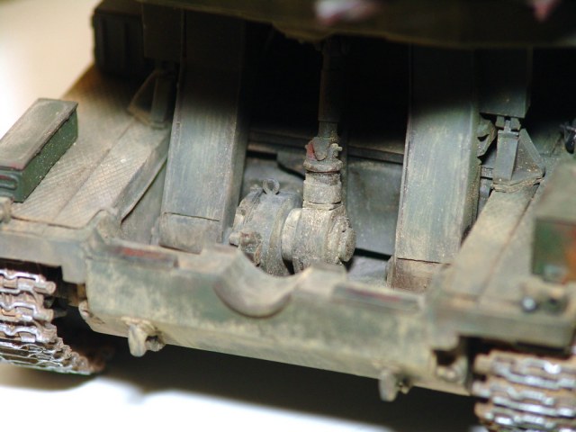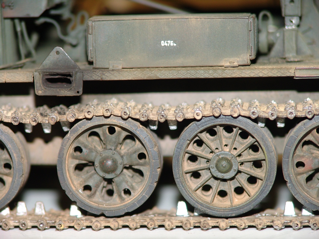 Да, есть немного, но провис сделал намерено, два первых катка с каждой стороны подвижны на подвеске, при натянутой гусянке у них свободного хода не будет ))