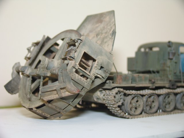 Доброго времени суток. Выношу на обсуждение модель котлованной машины МДК-2. Сама модель была изначально БАТ-М от Panzer-Shop. От модели взяты корыто, катки, гусянка и кабина и некоторая мелочевка.. Остальное самодел, полистирол, металл и т.д. Более подробно по модели можно посмотреть в Сказке о постройке http://karopka.ru/forum/forum188/topic16719/