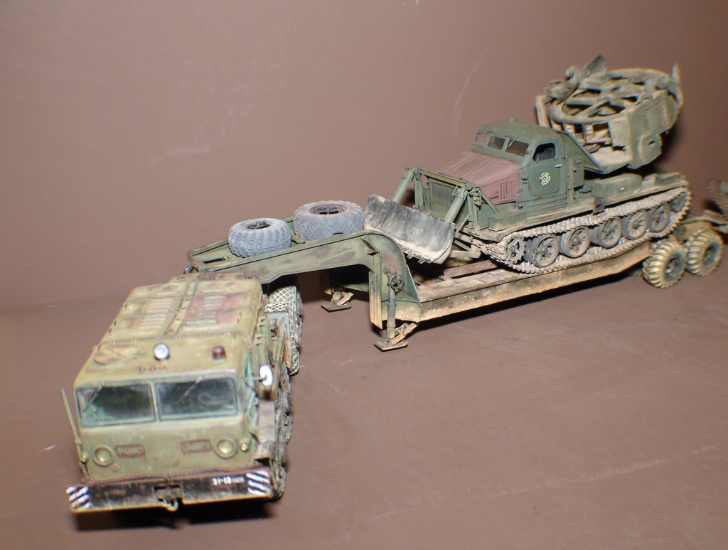 Мне мой батя про него рассказывал....их искали по всем РВСН и поштучно после ремонта отправляли в части на север(Плесецкий полигон) или в Сибирь(Оренбургская или Омская армия)....всячески пытались выкупить их старатели....причина - трос НЕ рвется и работает при -40 и ниже а гидравлика лопается....аналог бульдозер с тросовым подъемом С-65(не ручаюсь за правильную идентификацию)....но бат то мощнее....а кузов стандартный - можно перевозить груз....БАТ-М богаче на рабочие органы.....зацепы ставились при режиме прохода через минное поле - отвал плугом углом вперед и передняя лапа заглублена на 0.5 метра....для максимального сцепления....