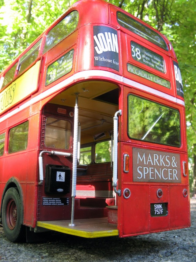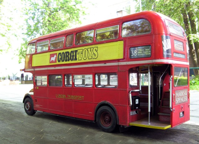 Как обычно, немного болтовни. Модель сама по себе интересна. Ну, я и Лондон люблю, и сам по себе автобус весьма харизматичен. Самым сложным было даже не конвейерное изготовление сидений)))Во-1, так случилось, что я был вынужден более полугода не подходить к коробке. Поначалу были порывы, потом как-то отвлекся, а в итоге уже настолько ушел запал первоначальный, что доделывал лишь бы доделать. Вроде и завершить хотелось, но и того азарта на проработку не было. Отсюда и второе - проблема с работой светодиодов. Первоначальная задумка реализовать освещение наткнулась на суровую реальность в виде тускло горящих лам второго этажа, необходимость ваять фальш-потолок. Вкупе с желанием закончить быстрее я отказался от света на 2 этаже, а там и от первого. Вернее, так - свет может гореть на 1 этаже, но необходимо доделать питание. Видимо, где-то провод отвалился по пути к диодам - что-то отходит. Полностью не разобрался, но все же не теряю надежды доделать. Фары горят, хотя и не тем оттенком, каким хотел. Постараюсь выложить фото, когда разберусь с салоном.