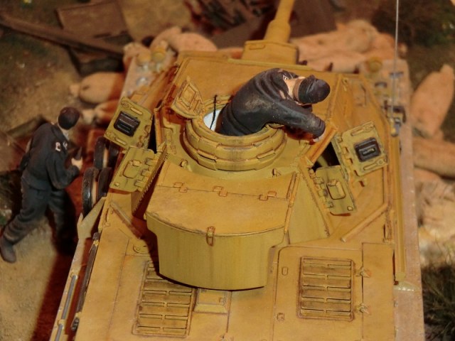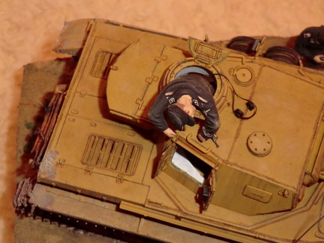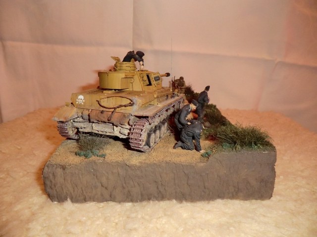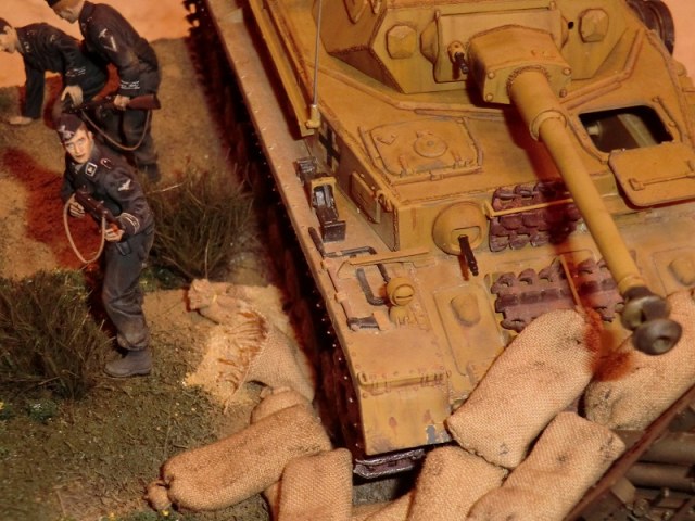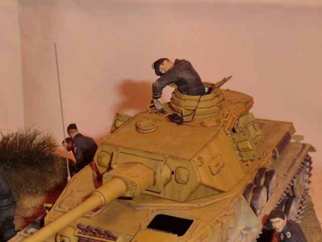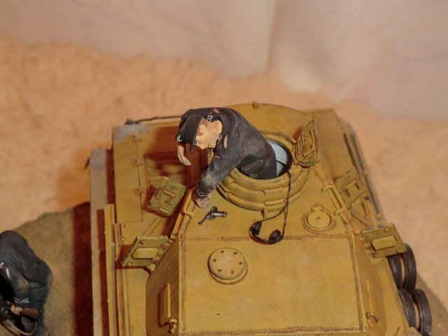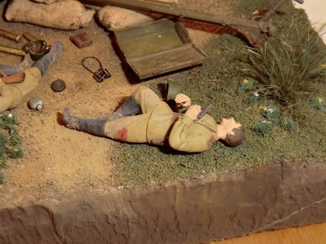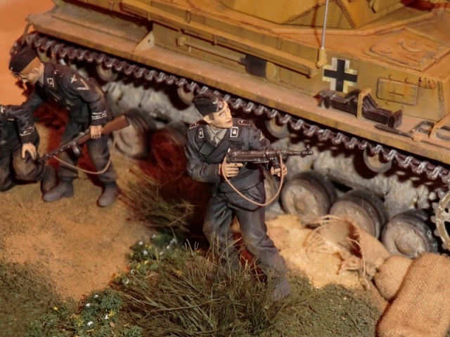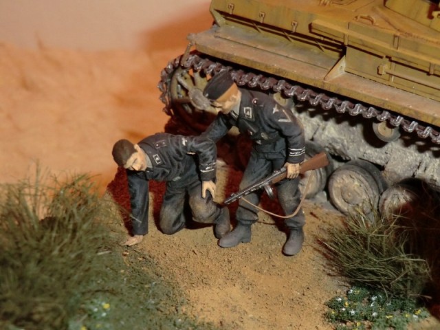 Дак хорошая работа! Думаю: успеет товарищ ткнуть штыком фрица, или нет? Единственное, что кажется неестественным - кепка на голове подстреленного танкиста. Обычно на фото они без головных уборов, да и свалилась бы она с него.. Прорисованы танкисты прекрасно. Диорама, думаю, удалась..