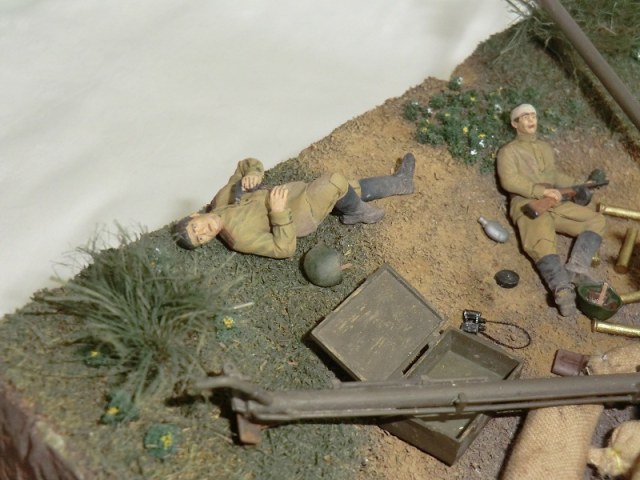 Спасибо Вам за отзыв!У раненого в руке есть ТТ в руках,плоховато видно,ранена левая нога,добавлю фото. Второй раненый:если в руке граната вторая должна быть без оружия? Я немного не понял Вас.