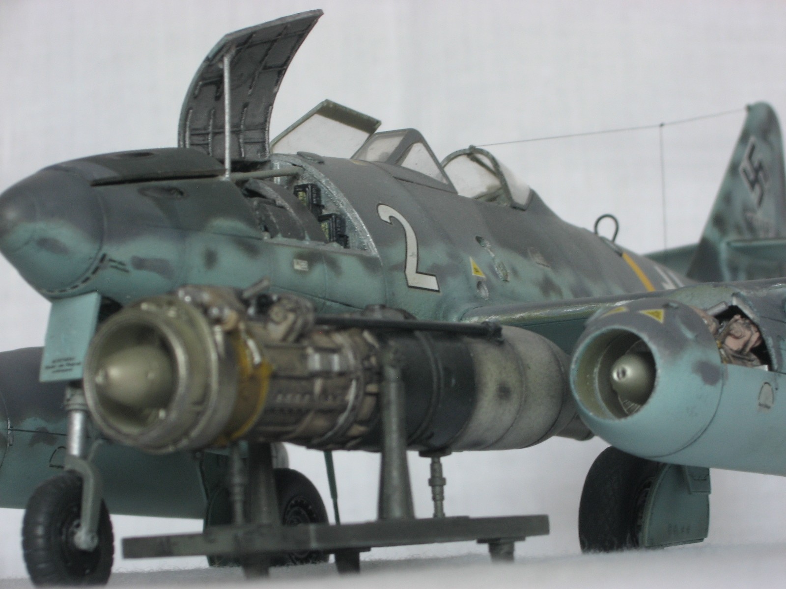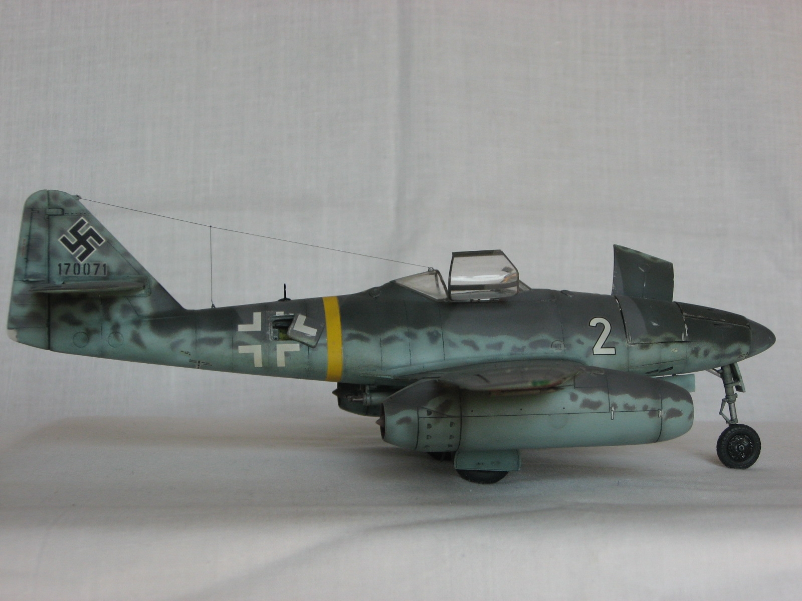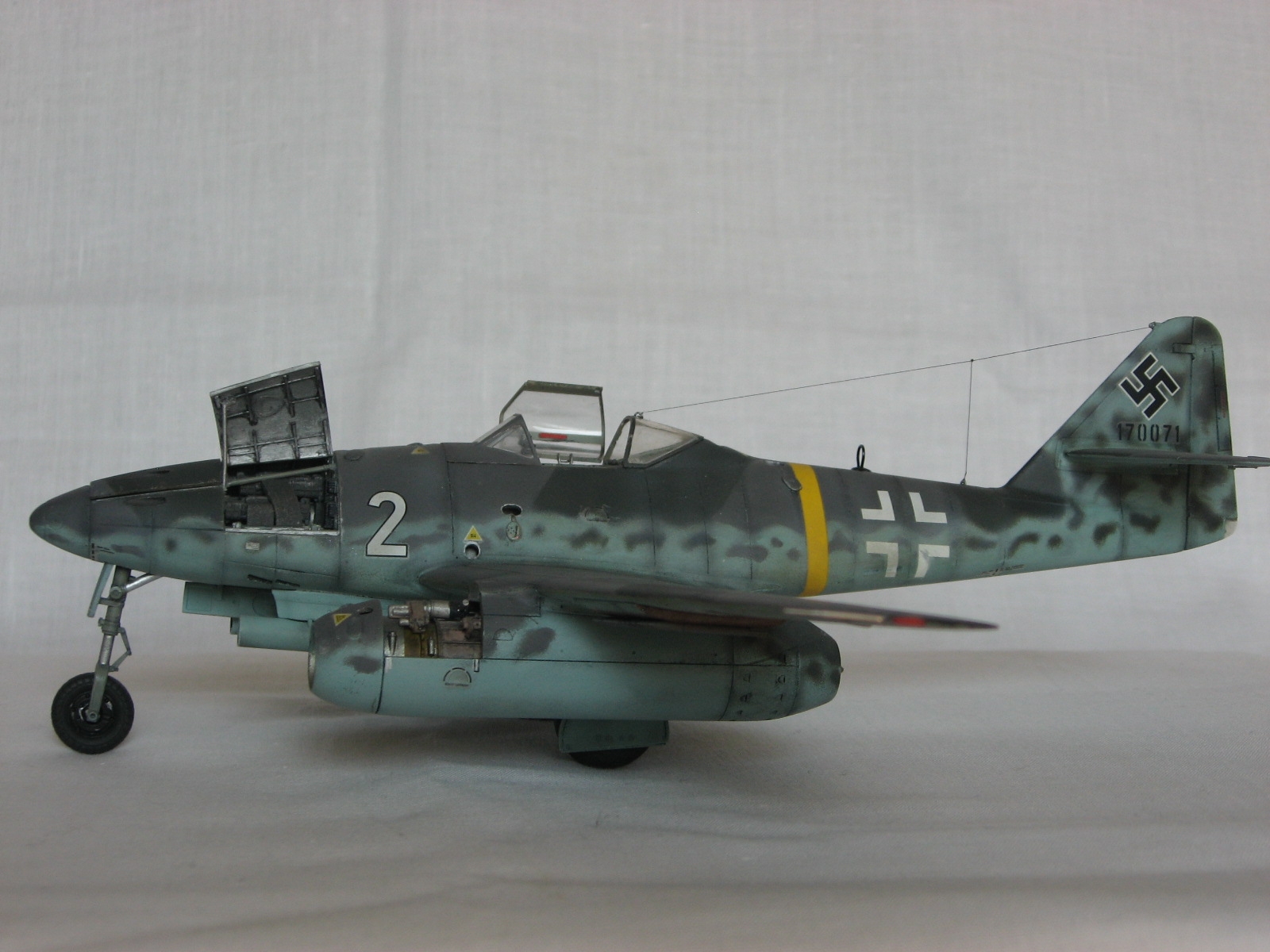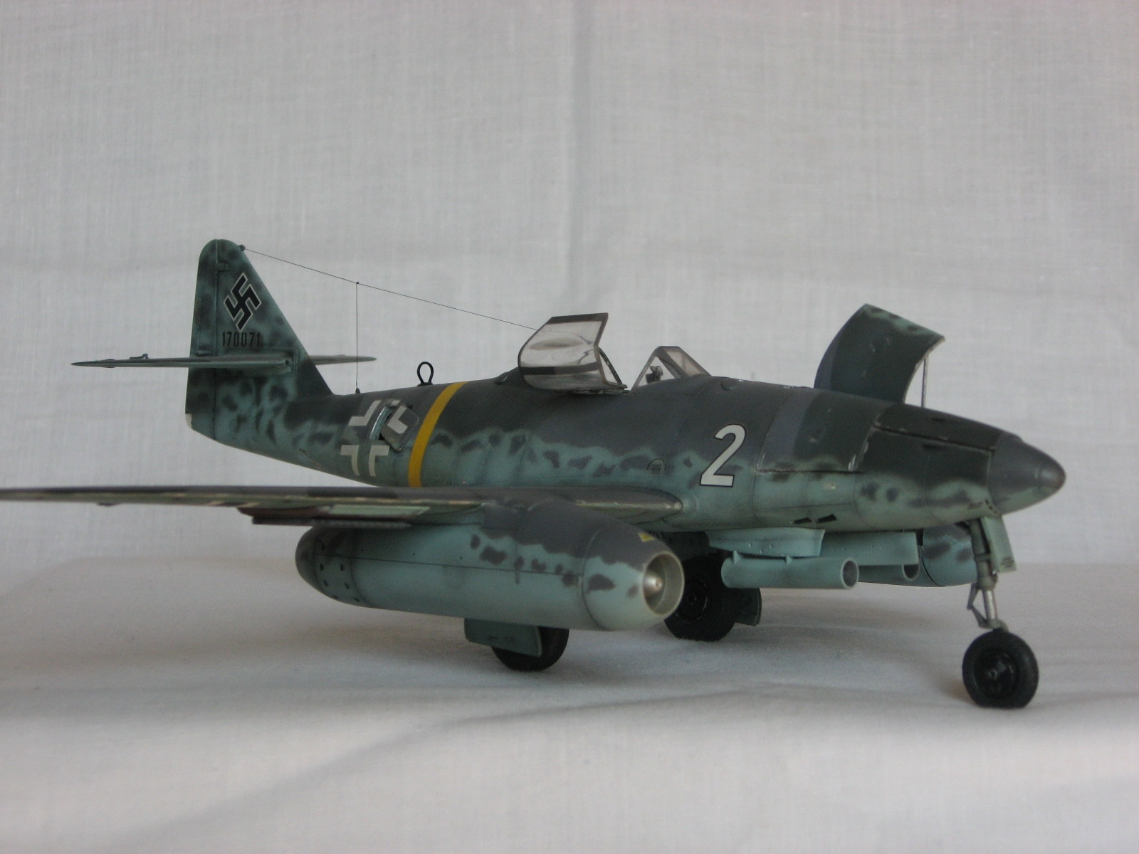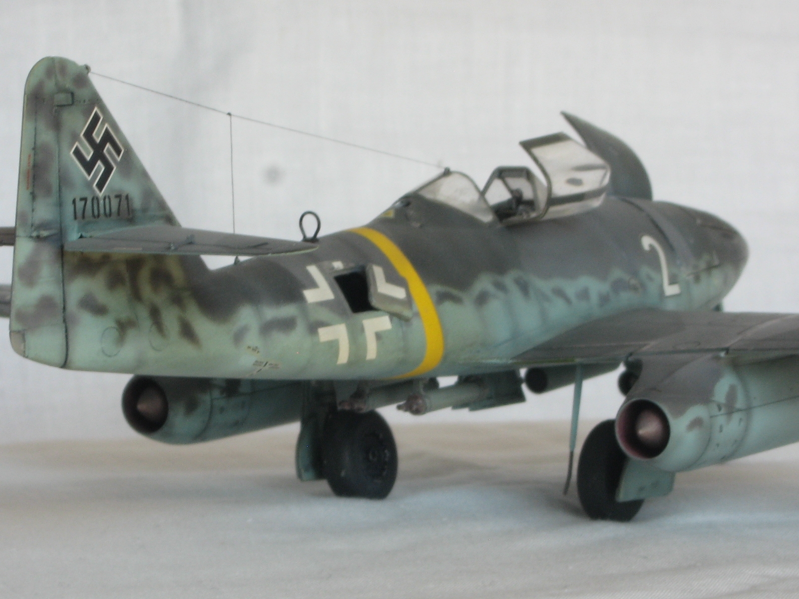 Здравствуйте всем, всем, всем!!! По моим наблюдениям "ласточки" в последнее время регулярно залетают на просторы сайта. Весна однако!!!Поэтому хотелось бы показать свой вариант. хоть и построенный лет 6-7 назад, но не потерявший для меня "актуальности" Me 262 A-1a Clear Edition от Tamiya. Модель конечно классная, впечатлило по тем временам наличие всякого разного, но делать прозрачным, как учебное пособие, не хотелось и я ограничился вырезанием возможных лючков, помня что под ними что то есть. Это было единственной моей "доработкой" по тем временам, чему я был несказанно рад. Много чего можно было "обновить" по нынешним временам, но как говорится, что есть то и есть. Красил акрилами Xtracrylix, матил Revell2 по мотивам Erprobungskommndo 262 W. Nr.170071. С уважением , RSHA
