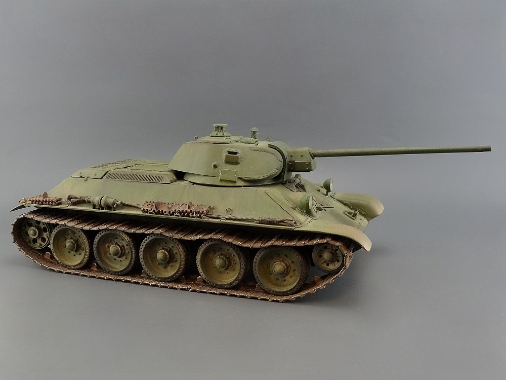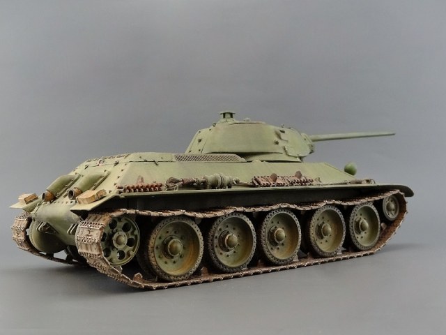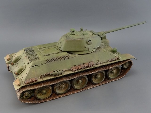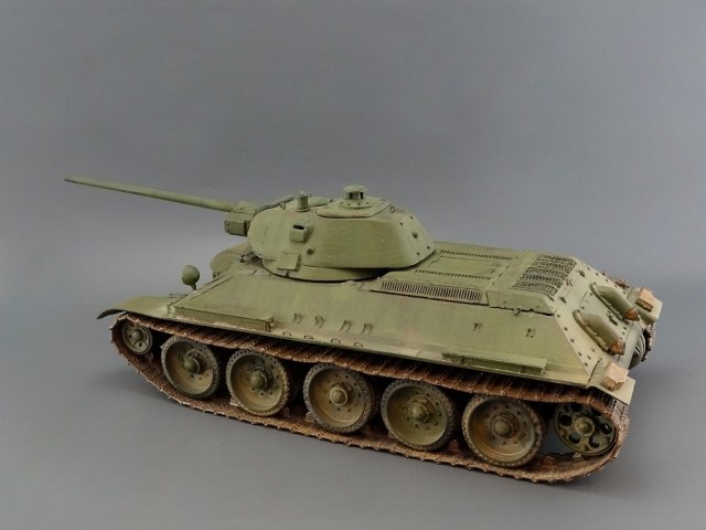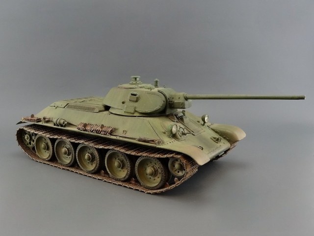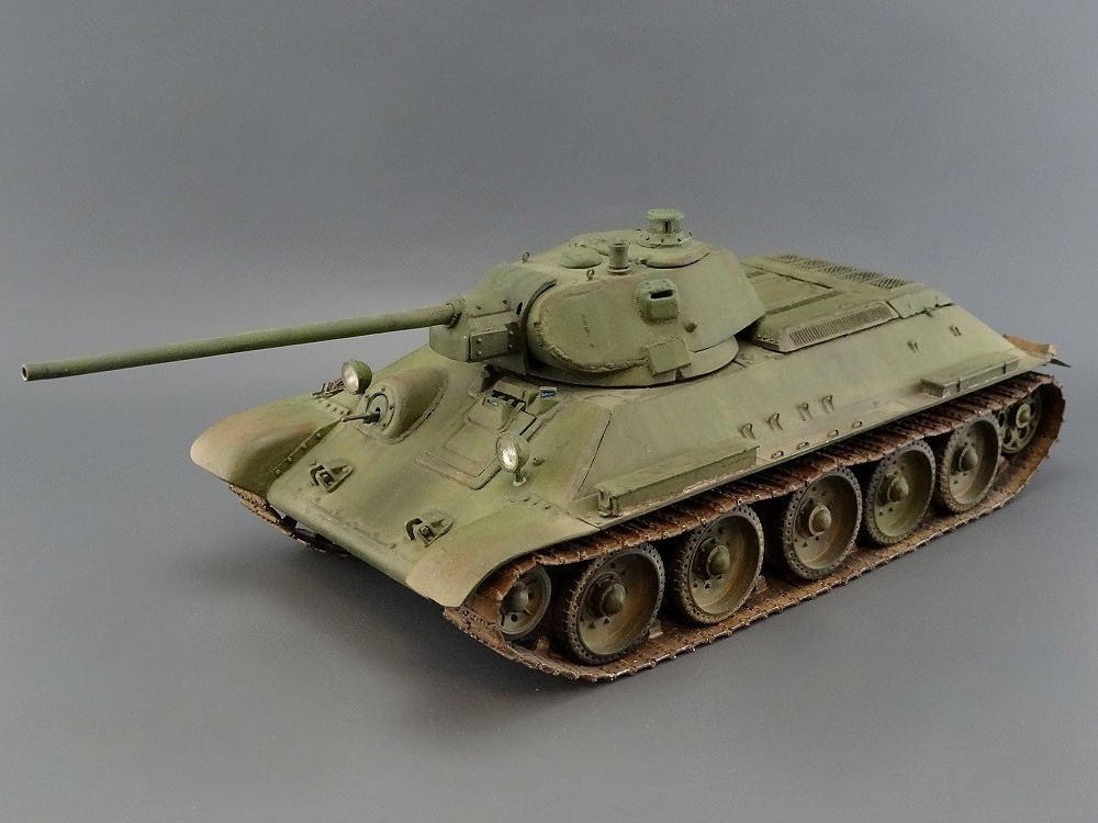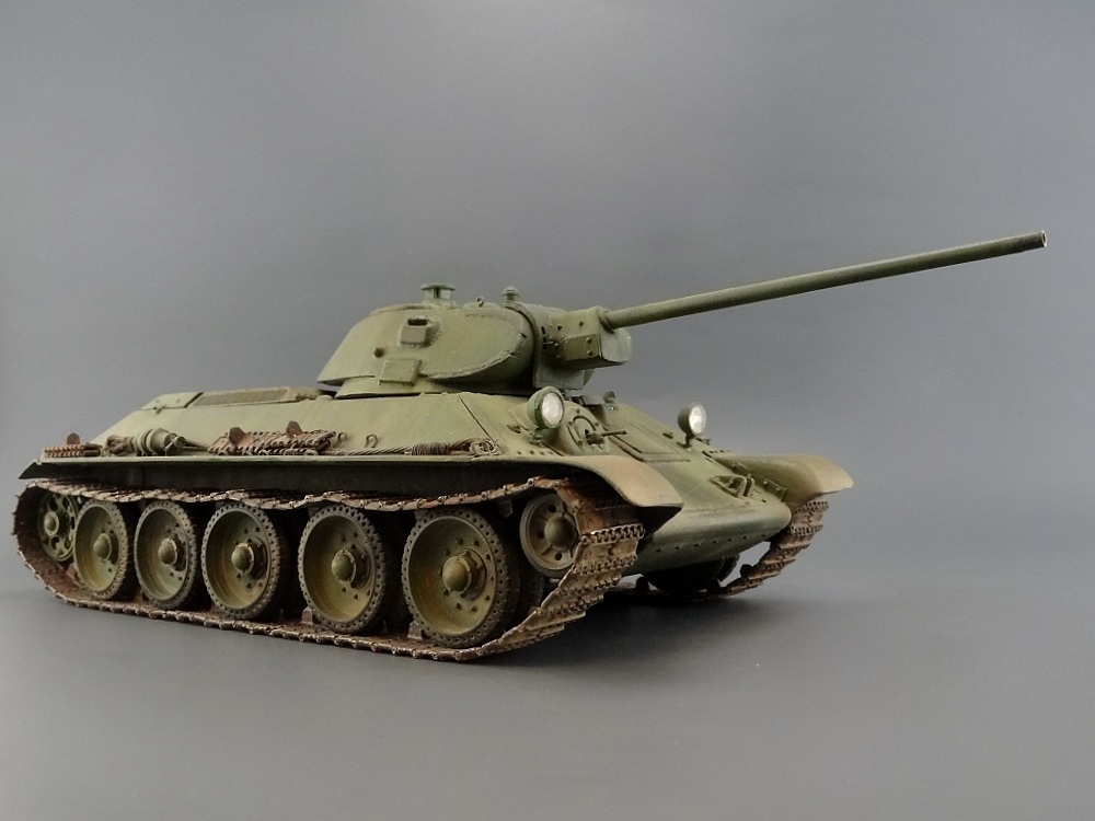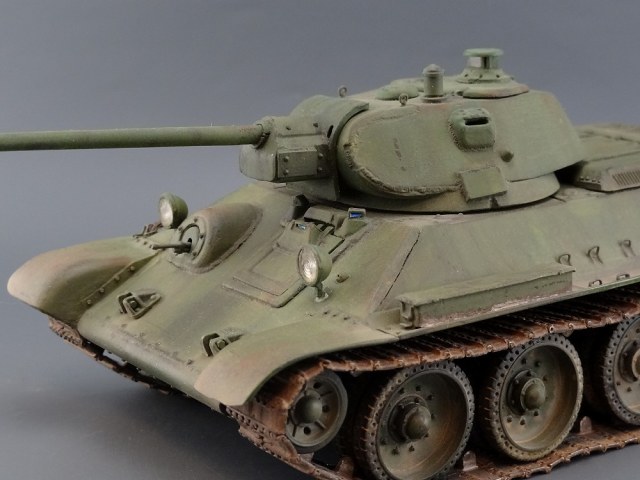 хорошая 34-ка! имхо-швы кое-где грубоваты. я так понял-это опытный образец по известному фото? тады фары красились в черный цвет. ну и с оптикой непонятно-у мехвода в базу, а рядом ярко-голубым светится..