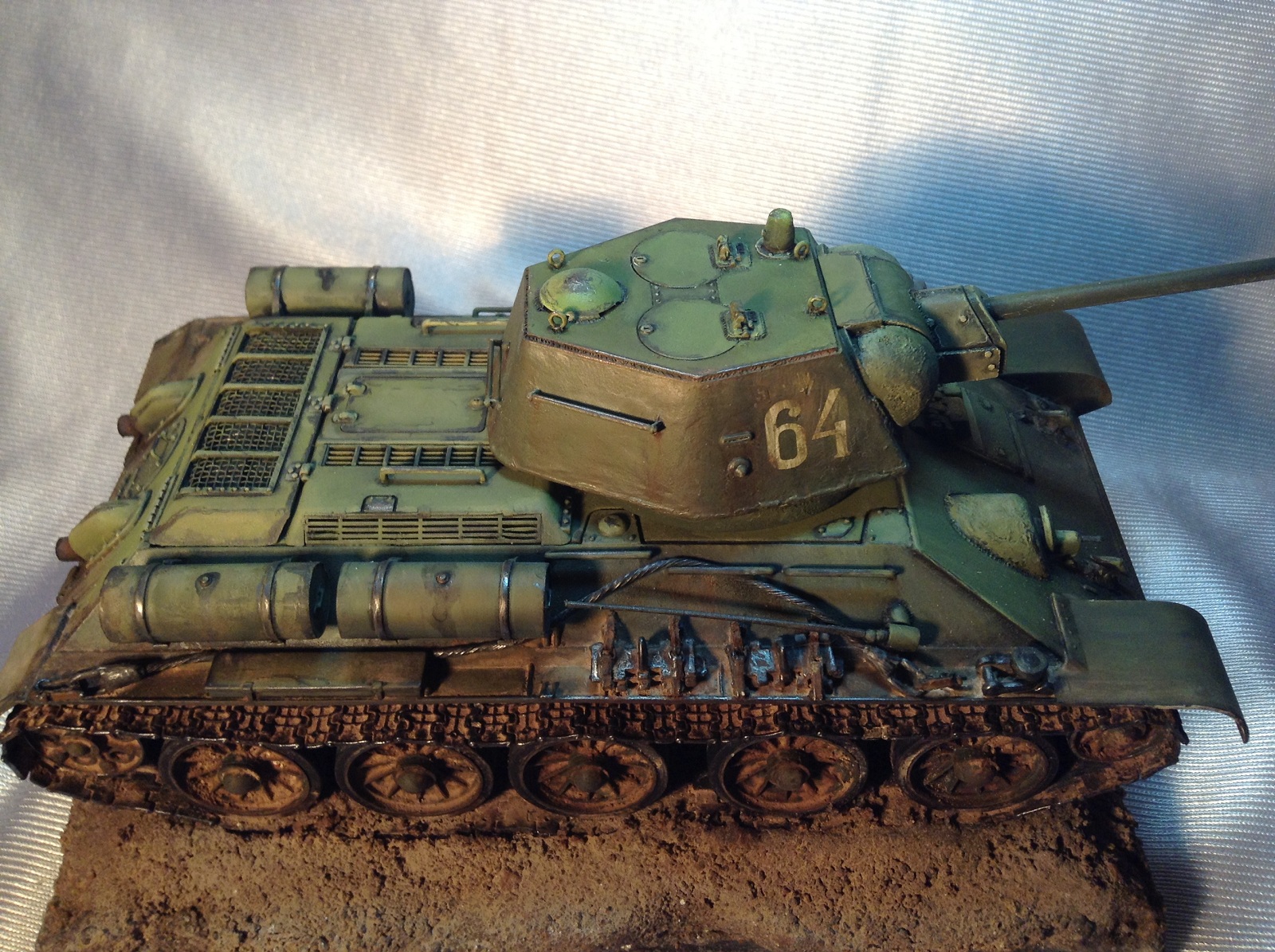 Окрас понравился! Что возмутило- ящикЗиП и фара... фара инфрокрасная, далеко послевоенная, ставилась в процессе модернизации, на Т-34\85 в 60-х, и то с правой стороны танка по ходу...